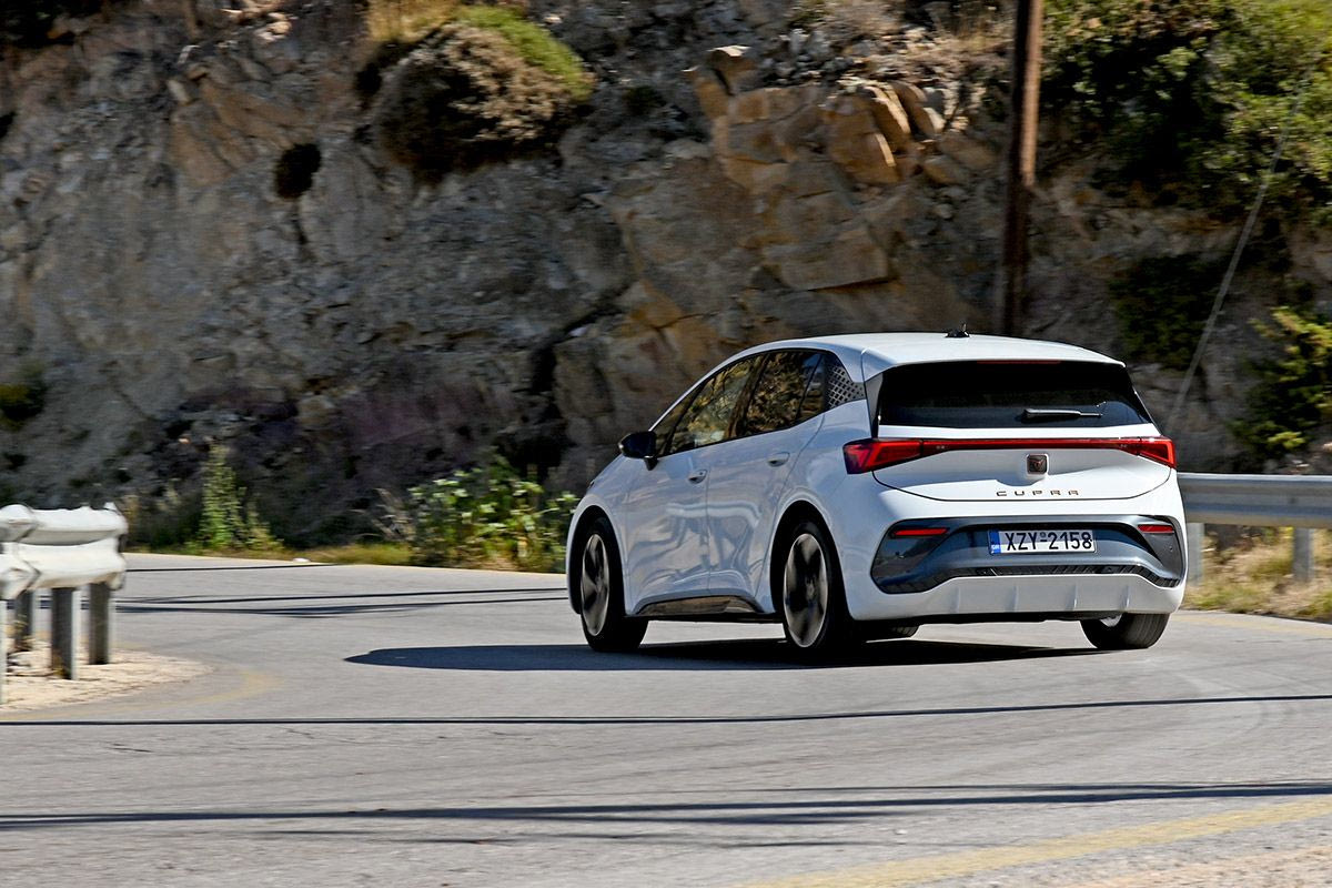 Τα παραπάνω κατ’ αρχήν να πούμε πως είναι “στο πιάτο”. Δεν είναι “κρυμμένα”, ούτε χρειάζονται “ειδική συνταγή” για να τα απολαύσει κανείς. Ο οδηγός κρατάει στα χέρια του ένα πολύ καλό, άμεσο και ακριβές, τιμόνι που αποτελεί την απαραίτητη συνέχεια στη δυναμική αίσθηση συνολικά του αυτοκινήτου. Το πλαίσιο ανταποκρίνεται θαυμάσια εκεί που θα ψάξει ο οδηγός να δει τις διαφορές από άλλες ηλεκτρικές προτάσεις και θα “βρει” τη διαφορετικότητα της Cupra.