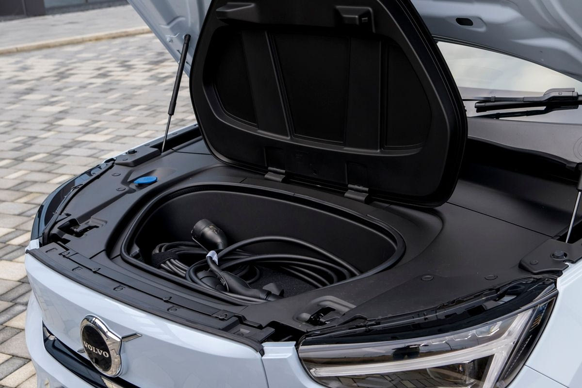 Αυτός που για διευκόλυνση αποκαλείται “frunk” από τη σύντμηση των λέξεων front (εμπρός) και trunk (χώρος φόρτωσης). Εδώ λοιπόν, το C40 προσφέρει τη δυνατότητα αποθήκευσης έως και 31 λίτρων επιπλέον στο κάτω από το εμπρός καπό, με δικό του ξεχωριστό ποιοτικότατο καπάκι που “σφραγίζει” και δεν επιτρέπει σε νερό να περάσει μέσα. Εκεί μπορούν να τοποθετούνται τα καλώδια της φόρτισης, για να μην είναι στη μέση όταν έρχεται η ώρα της φόρτωσης των μπαγκαζιών για τις διακοπές.
