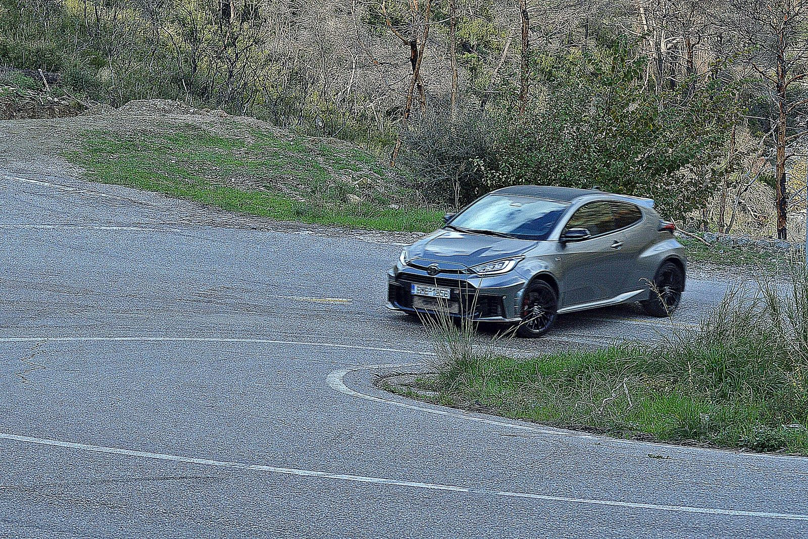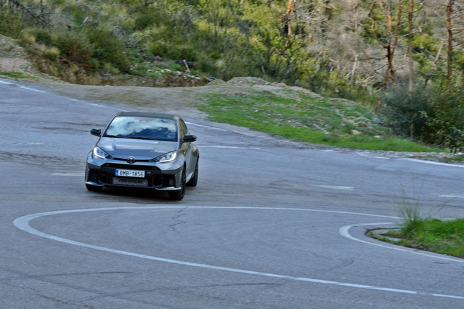 Σε επαρχιακό δρόμο, το GR Yaris είναι αποκάλυψη, καθώς το μόνο που θέτει τα όρια, είναι η αντοχή του οδηγού στη διαχείριση του όγκου των συγκινήσεων. Δεν κυνηγάς τα όρια. Έρχονται μόνα τους. Και όταν έρθουν, είναι προβλέψιμα, καθαρά, χωρίς να τρομάζουν. Σε ολισθηρό τερέν, καταλαβαίνεις γιατί αυτό το αυτοκίνητο γεννήθηκε από το WRC. Εκεί που άλλα “σπορ” πρέπει να “μαζευτούν”, το GR Yaris ανοίγει με αυτοπεποίθηση το δρόμο.