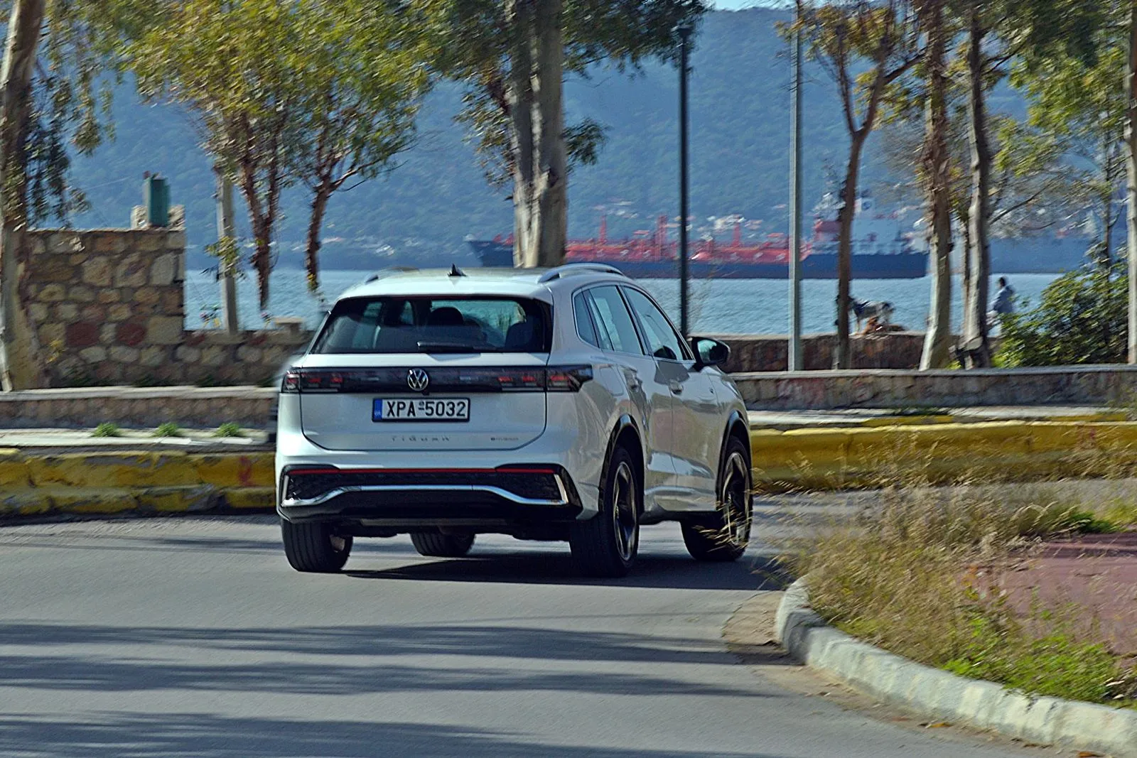Παρά το επιπλέον βάρος της μπαταρίας, το πλαίσιο παραμένει ουδέτερο και προβλέψιμο. Το τιμόνι είναι ακριβές, με καλή πληροφόρηση για τα δεδομένα της κατηγορίας, ενώ τα φρένα έχουν βελτιωθεί στη μετάβαση μεταξύ ανάκτησης ενέργειας και συμβατικής πέδησης – ένα σημείο που συχνά προβληματίζει στα plug-in. Σε ταξίδι, το Tiguan αποδεικνύεται εξαιρετικός cruiser. Με άδεια μπαταρία λειτουργεί ως αποδοτικό υβριδικό, κρατώντας την κατανάλωση σε λογικά επίπεδα (περίπου 6-7 λτ./100 χλμ. σε αυτοκινητόδρομο).