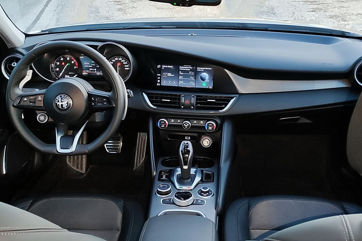Στον εσωτερικό κόσμο της Giulia ο σπορ χαρακτήρας συνδυάζεται με μια premium αύρα. Ο σχεδιασμός βάζει ξεκάθαρα τον οδηγό στο επίκεντρο. Η θέση οδήγησης είναι άψογη και η εργονομία σωστά μελετημένη.