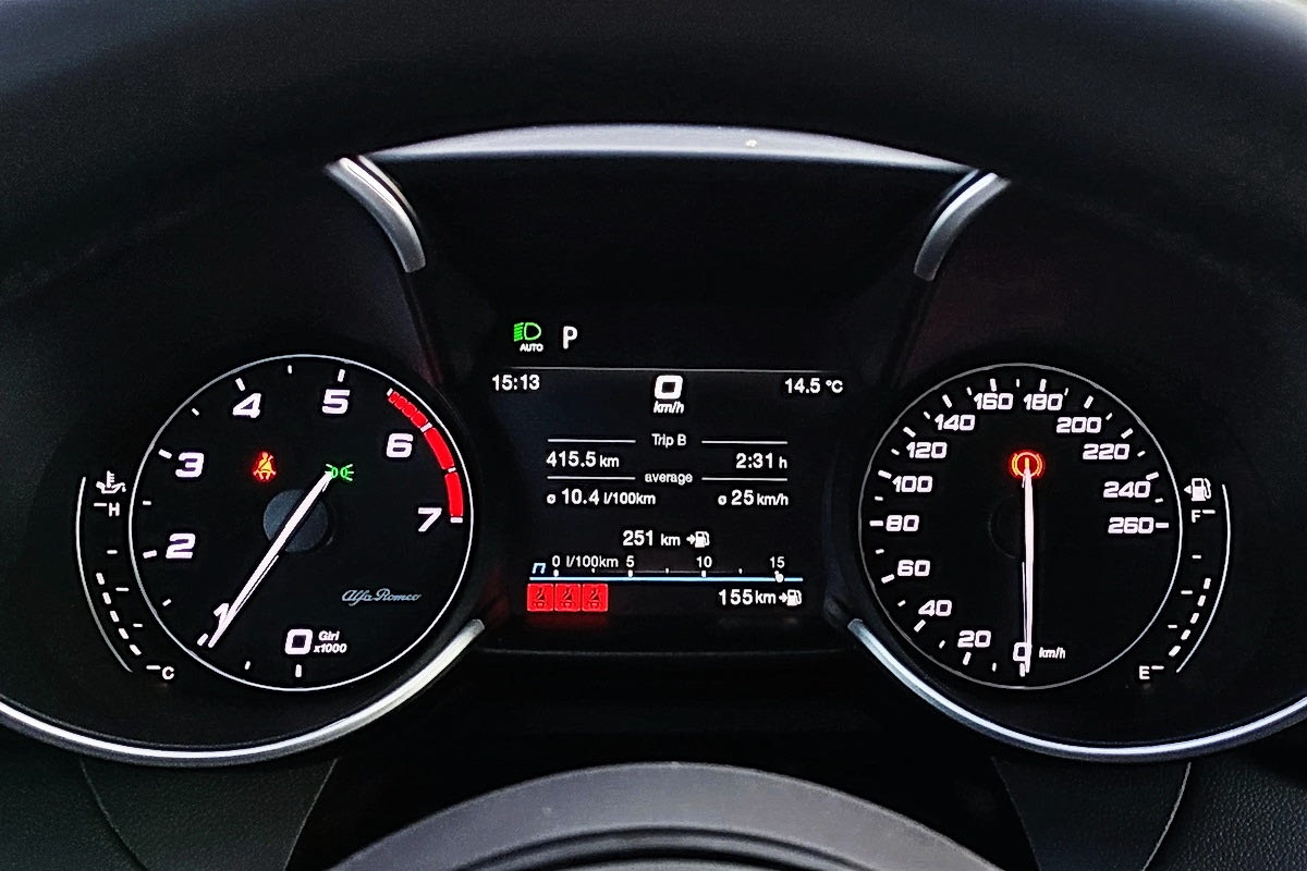 Μπορεί να φταίει και το γεγονός ότι η Giulia δεν σε αφήνει σε ησυχία, αλλά η κατανάλωση καυσίμου δεν συγκαταλέγεται στα πλεονεκτήματά της. Δύσκολα θα δεις τιμές κάτω από τα 9 lt/100 km, ενώ πιο συχνά η ένδειξη στο trip computer θα φλερτάρει με το 10 – σίγουρα όχι κοντά στα 6,4 lt/100 km που ανακοινώνουν οι Ιταλοί.