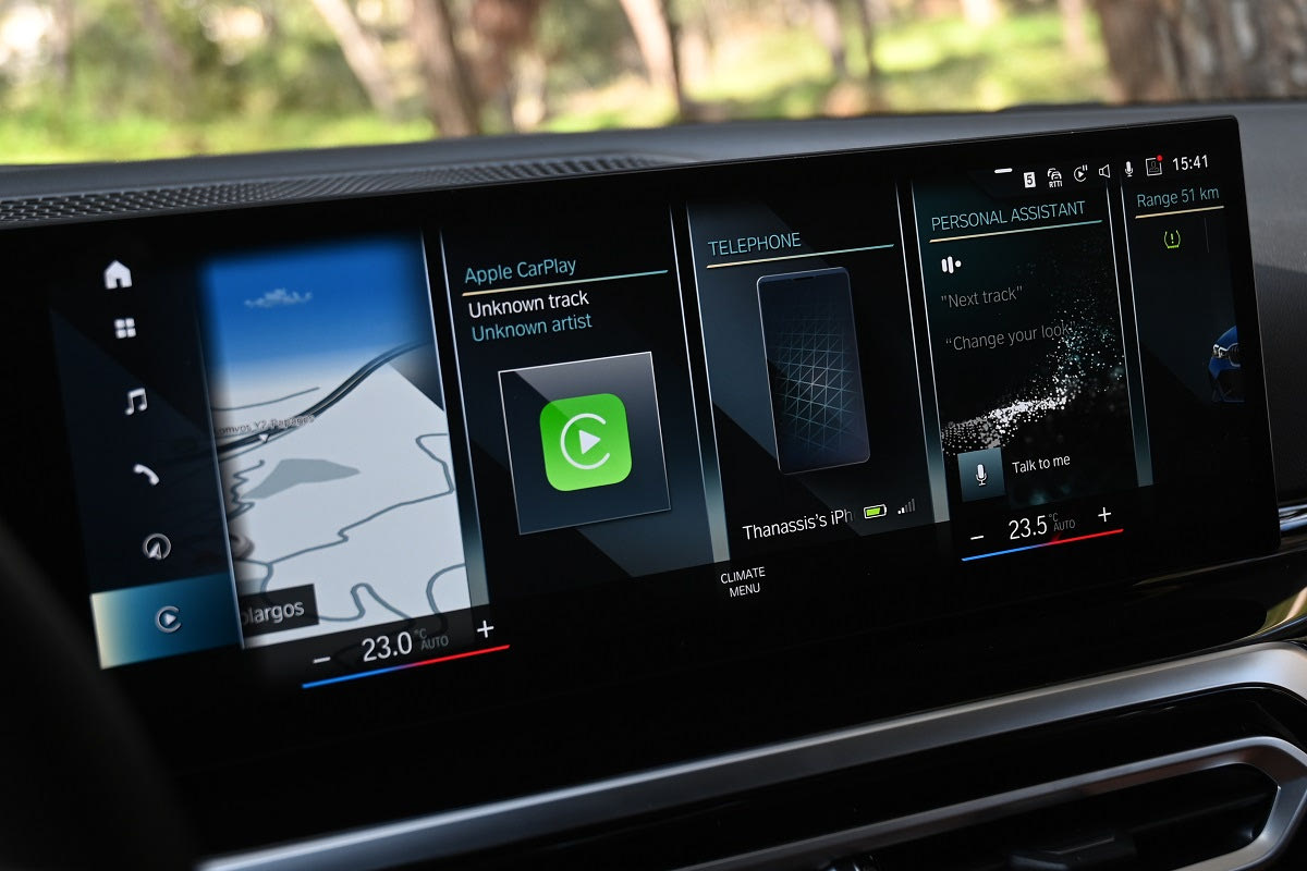 Το BMW Curved Display περιλαμβάνει, εκτός από βελτιωμένη συνδεσιμότητα smartphone μέσω Apple CarPlay και Android Auto, εκτεταμένες δυνατότητες του ψηφιακού βοηθού BMW Intelligent Personal Assistant.