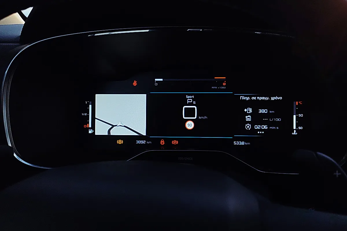 Τον hi-tech χαρακτήρα της καμπίνας ενισχύει ο ψηφιακός πίνακας οργάνων 12,3’’ που διακρίνεται σε πληροφορία και μπορεί να διαμορφωθεί ως προς τις ενδείξεις και την απεικόνισή τους.