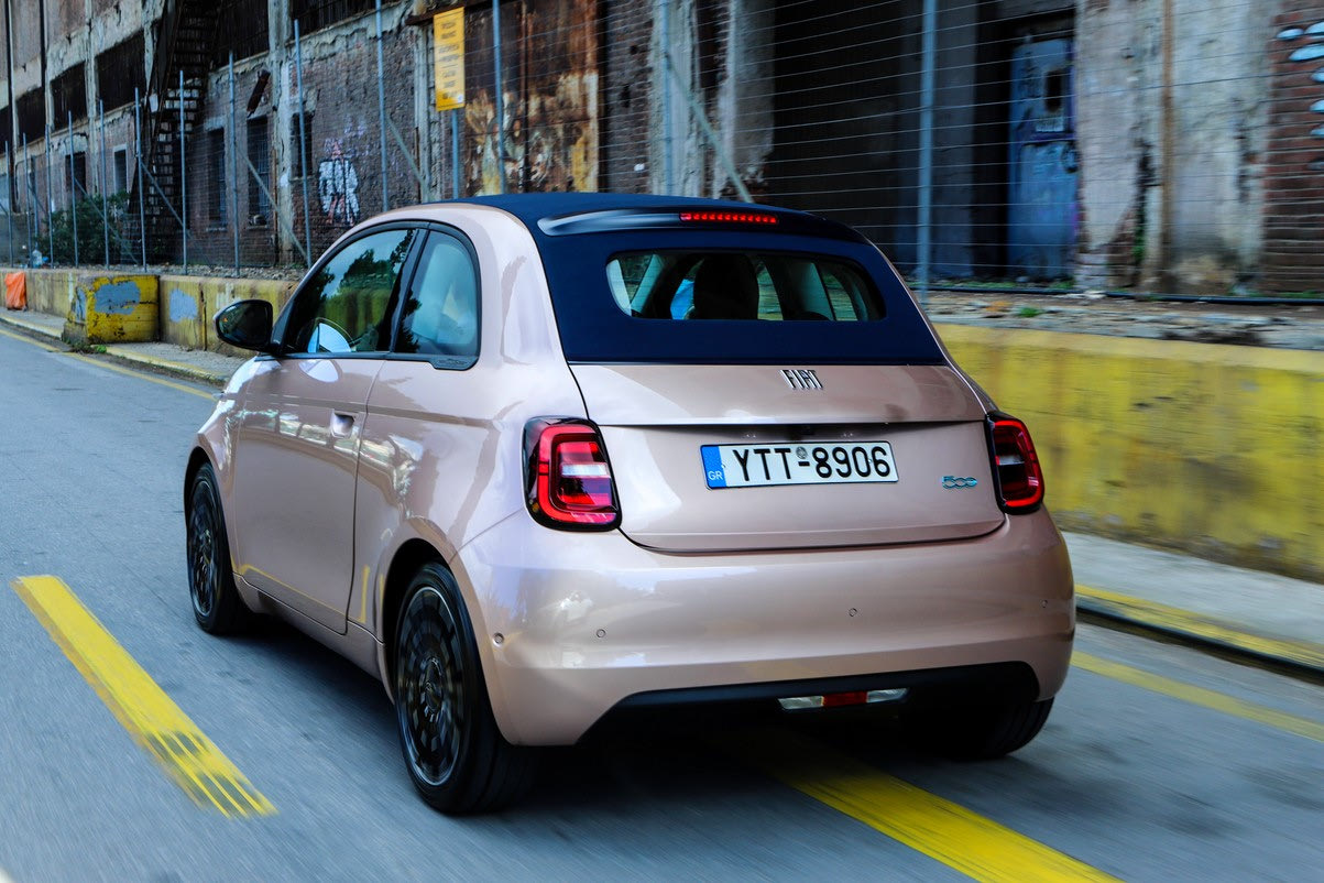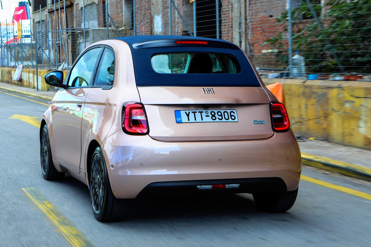 Όσο ευχάριστο είναι το ηλεκτρικό 500 σε εξωτερική εμφάνιση και στην αίσθηση που αποπνέει η καμπίνα του, άλλο τόσο απολαυστικό είναι και στην οδήγηση. Το μοτέρ των 118 ίππων και των 220 Nm ροπής προσφέρει αμεσότητα στο πάτημα του γκαζιού και πολύ καλές επιδόσεις συνολικά: 0-100 km/h σε 9’’ και τελική ταχύτητα 150 km/h (περιορίζεται ηλεκτρονικά έτσι ώστε να μην μειώνεται η αυτονομία της μπαταρίας στο ταξίδι με υψηλή ταχύτητα).