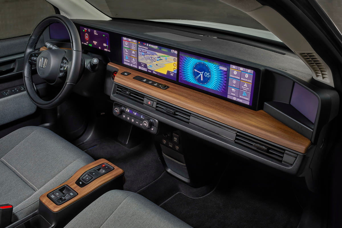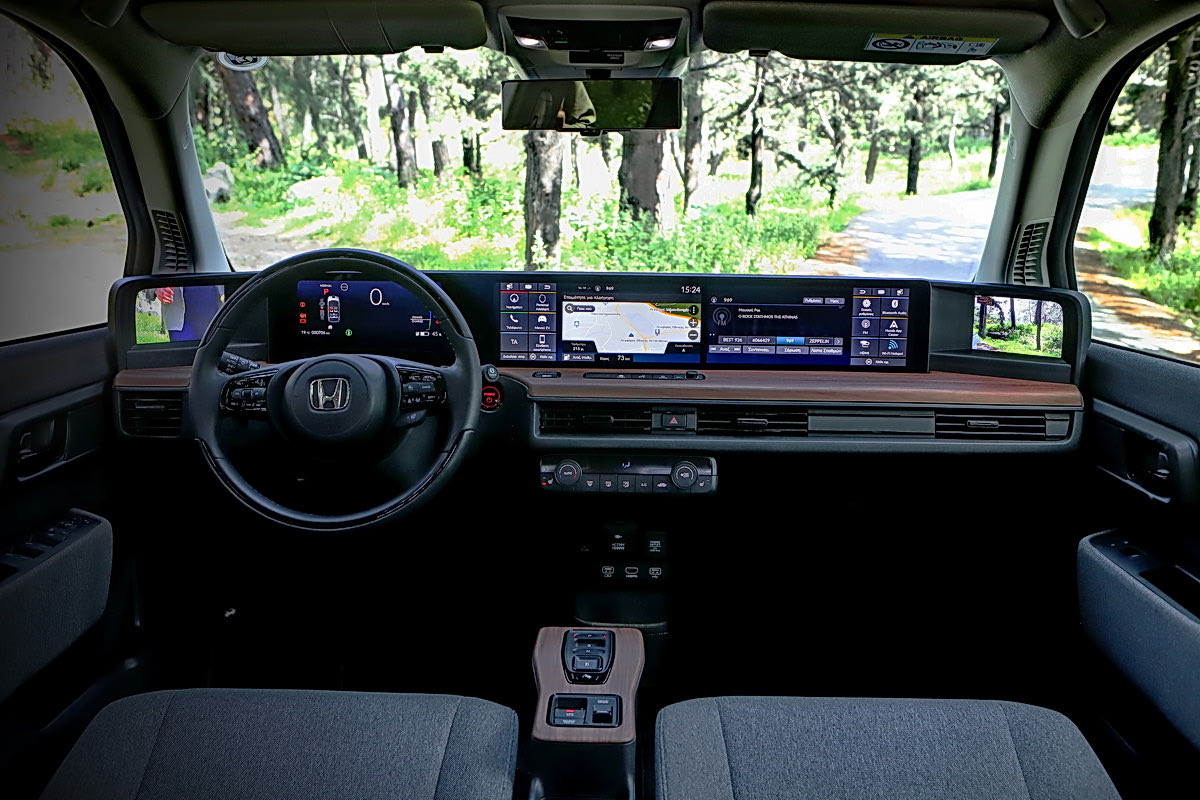 Αν το εξωτερικό προκαλεί θαυμασμό, η καμπίνα του ηλεκτρικού Honda προκαλεί ακόμη μεγαλύτερη έκπληξη. Και αυτό κυρίως λόγω του ταμπλό που ουσιαστικά είναι μια οθόνη απ’ άκρη σ’ άκρη.