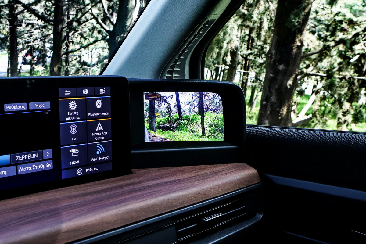 Δηλαδή, όχι μία, αλλά πέντε οθόνες! Στις άκρες, στο ιδανικό οπτικό πεδίο του οδηγού, υπάρχουν οι δύο οθόνες 6’’ των εξωτερικών καμερών. Ρυθμίζονται κανονικά, όπως και οι κλασικοί καθρέπτες και προσφέρονται στον στάνταρ εξοπλισμό του αυτοκινήτου.