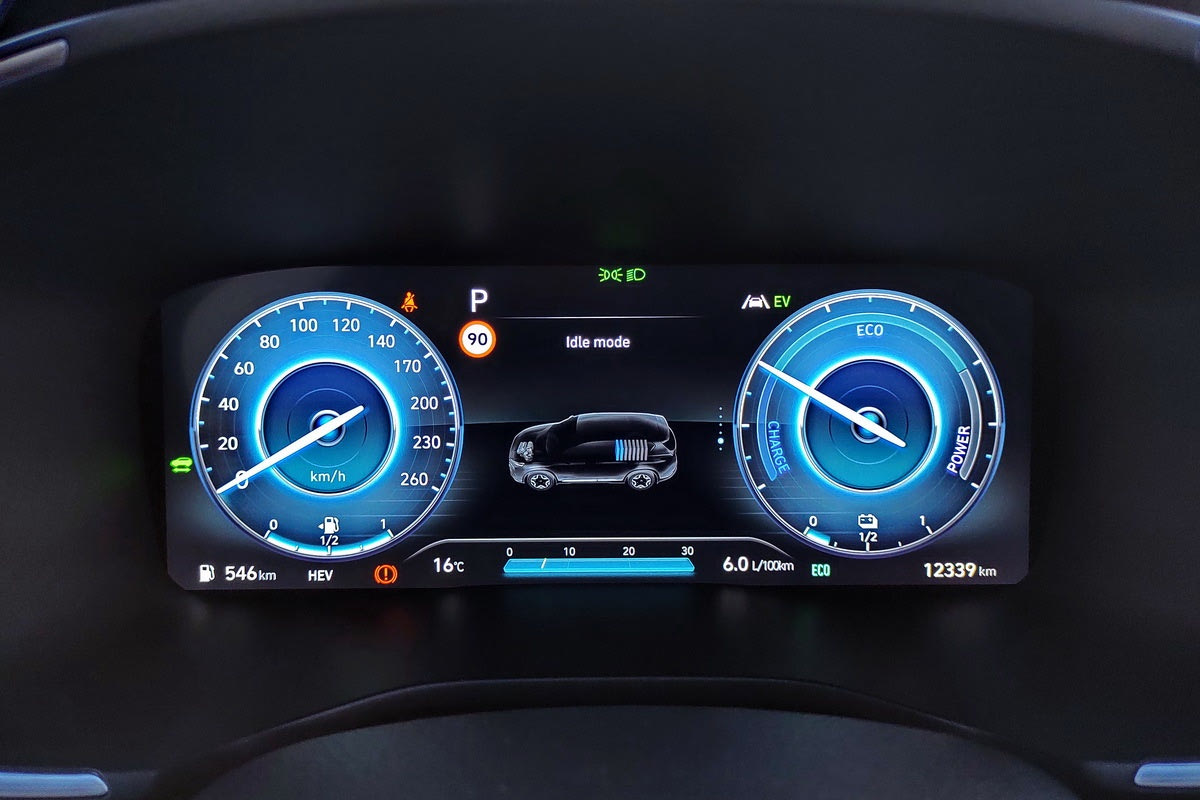 Η μπαταρία του υβριδικού συστήματος βρίσκεται τοποθετημένη κάτω από τα εμπρός καθίσματα και έχει χωρητικότητα 13,8 kWh. Με μια πλήρη φόρτιση, υπόσχεται ηλεκτρική αυτονομία 58 km σε μεικτό κύκλο ή 69 km εντός πόλης – σύμφωνα με τα επίσημα στοιχεία του κατασκευαστή. Στην πράξη, 45 με 50 km αποκλειστικά με ηλεκτρική ενέργεια είναι εφικτά, αν επιλέξεις οικονομικό στυλ οδήγησης.