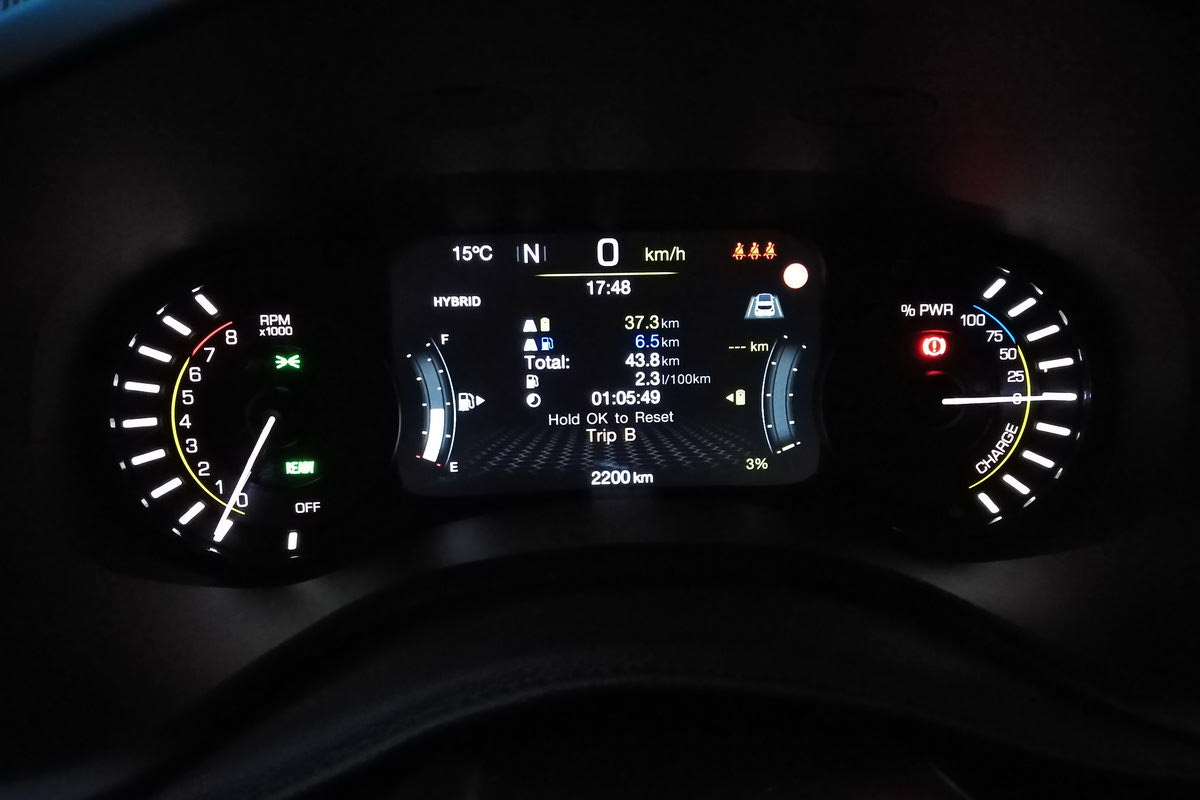 - ELECTRIC: Αμιγώς ηλεκτρική κίνηση με μέση αυτονομία 50 km. Όταν πέσει η φόρτιση της μπαταρίας ή αν πατηθεί το πεντάλ του γκαζιού μέχρι το τέρμα της διαδρομής, το σύστημα περνά αυτόματα στη λειτουργία HYBRID.