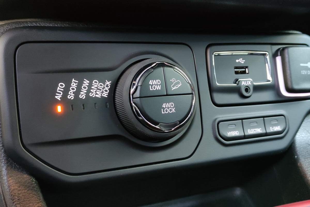 Το ‘4WD Lock’ εμπλέκει μόνιμα την τετρακίνηση σε ταχύτητες έως 15 km/h και το ‘4WD Low’ είναι για ακραίες συνθήκες και αξιοποιεί στο μέγιστο τα αποθέματα ροπής και των δύο κινητήρων. Ο οδηγός μπορεί μάλιστα να ρυθμίσει την ένταση της ανάκτησης ενέργειας κατά το φρενάρισμα / ρολάρισμα, κάνοντας π.χ. πιο έντονη την επιβράδυνση στο άφημα του γκαζιού.