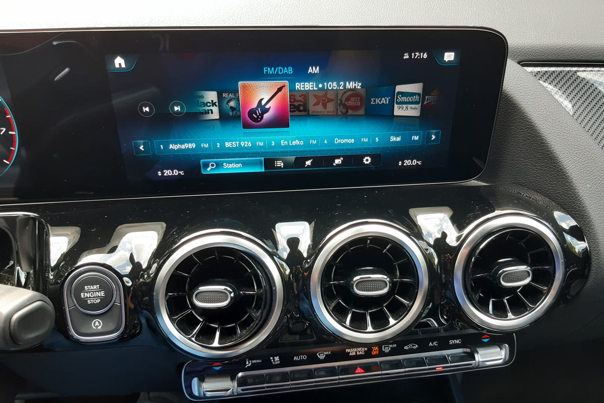 Ο χειρισμός όλων των λειτουργιών που αφορούν την οθόνη στο κέντρο του ταμπλό, μπορεί να γίνει είτε μέσω των πλήκτρων αφής επάνω της, είτε μέσω των χειριστηρίων στο τιμόνι και στο κεντρικό τούνελ ανάμεσα στα εμπρός καθίσματα. Εκεί που εδράζονται και δύο ποτηροθήκες αλλά και μια ευρύχωρη θήκη για αντικείμενα, με ένα ενιαίο κάλυμμα φινιρισμένο με μαύρη λάκα.