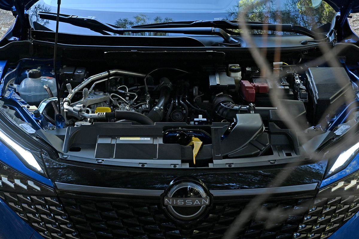 Η ανανέωση του Qashqai δεν αφορά στα μηχανικά του μέρη: εδώ ο τετρακύλινδρος κινητήρας βενζίνης 1.33 λίτρου συνεργάζεται με το ηλεκτρικό σύστημα 12V και συνδυαστικά η mild-hybrid μονάδα ισχύος αποδίδει 140 ίππους και 240 Nm από τις 1.650 στροφές.