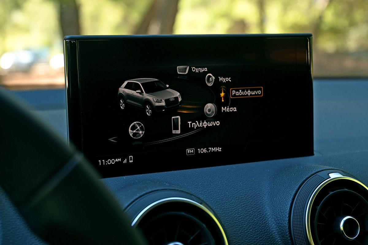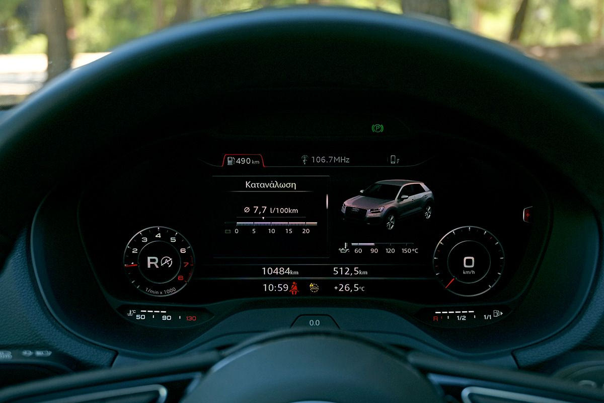 Παρότι η κεντρική οθόνη δεν είναι αφής (που, όπως προείπαμε, ίσως αυτό να μην είναι καν μειονέκτημα) και περιορίζεται στις 8,3 ίντσες, το Q2 διαθέτει ψηφιακό πίνακα οργάνων -ως ένα από τα πρώτα συμπαγή αυτοκίνητα που τον καθιέρωσαν- που επιδέχεται πολλές και διαφορετικές διαμορφώσεις. Πρόκειται για το Audi Virtual Cockpit, με μέγεθος 12,3’’, που είναι προαιρετικό. Πίσω στην κεντρική οθόνη, εκείνη ενσωματώνει το λογισμικό MMI navigation plus και προσφέρει τη δυνατότητα ελέγχου με φωνητικές εντολές και ασύρματης σύνδεσης του smartphone.