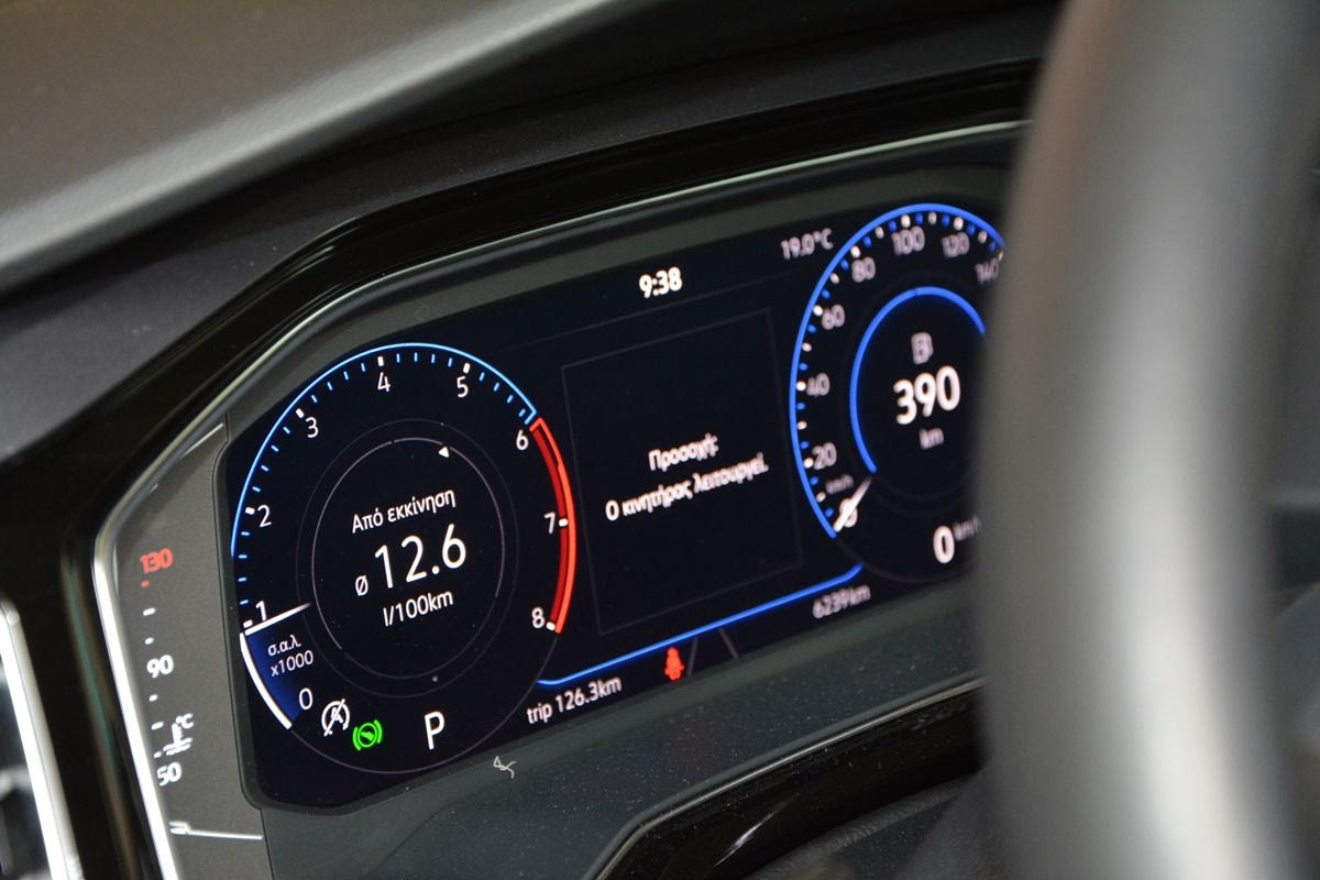 Στο ταμπλό, η εικόνα που δημιουργεί το Digital Cockpit με τις έγχρωμες οθόνες, είναι σύγχρονη και πραγματικά αντάξια των προσδοκιών που δημιουργεί αυτό το ξεχωριστό αμάξωμα. Η ποιότητα είναι τυπική για μοντέλο τςη VW, κάτι που σημαίνει πως δεν υπάρχει κάτι που τρίζει ή κάποια επιφάνεια που “υστερεί” σε υφή, ακόμα και σε σημεία που σε άλλες περιπτώσεις “δεν έχουν και τόσο σημασία” όπως είναι το επάνω μέρος των επενδύσεων στις πίσω πόρτες.