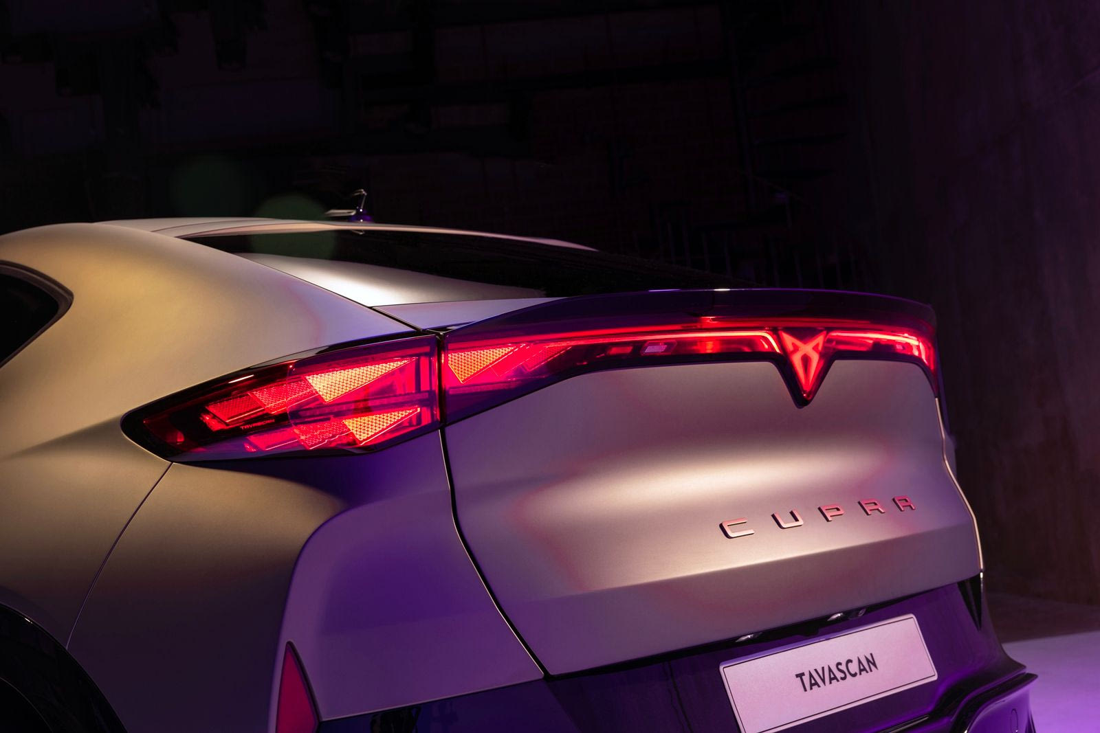 Ανέκαθεν στοιχείο της ταυτότητας της Cupra ήταν οι υπέροχες χαλκόχρωμες προσθήκες στο αμάξωμα και στο εσωτερικό. Σtο Tavascan συνδυάζονται με τις ανερχόμενες πλαϊνές γραμμές που συναντούν την κεκλιμένη οροφή και φυσικά με την τρισδιάστατη φωτεινή μπάρα σε όλο το πλάτος της ουράς, που ενσωματώνει το έμβλημα της ισπανικής εταιρείας.