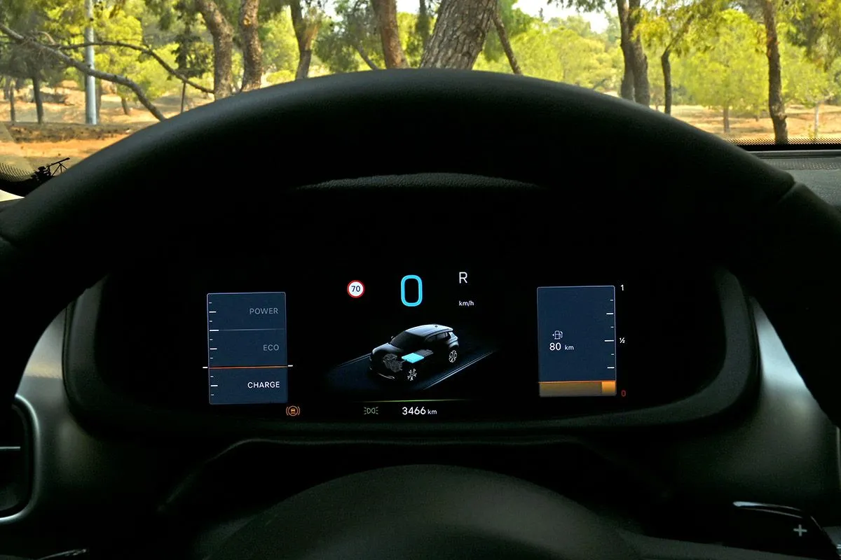 Το ηλεκτρικό μοτέρ όντως το “ζωηρεύει” όταν προσθέτει τη δύναμή του, αλλά μπορεί επίσης να κάνει και μικρές λειτουργίες της πόλης αμιγώς ηλεκτρικά: το παρκάρισμα, το σταμάτα-ξεκίνα στα φανάρια, όλα αυτά. Αυτές οι λειτουργίες εκτελούνται με τη χαρτογράφηση e-parking, e-creeping και e-queuing του συστήματος κίνησης.