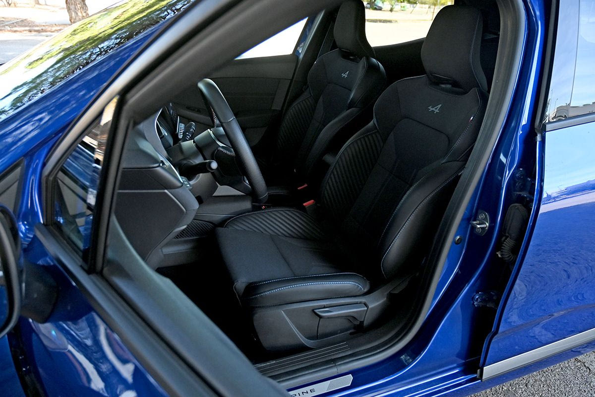 Στη γενικότερη αναβάθμιση της ποιότητας των υλικών του εσωτερικού με τη νέα γενιά του Clio, που περιλαμβάνει σε μεγάλο ποσοστό και βιώσιμα υλικά, η έκδοση Esprit Alpine προσθέτει ίσως την πιο εντυπωσιακή πτυχή της: τα υπέροχα σπορ καθίσματα τύπου μπάκετ, με το λογότυπο της Alpine στα προσκέφαλα και μια μικρή γαλλική σημαία στις πλαϊνές ραφές του.