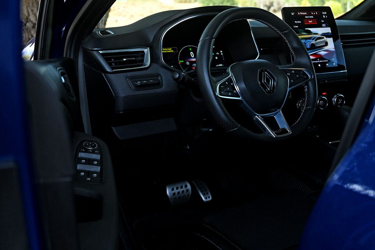 Η στήριξη και άνεση των καθισμάτων είναι κάτι που ανώτερο από ό,τι θα περίμενε κανείς από ένα υβριδικό supermini. Οι σπορ παραπομπές συνεχίζονται με τις τρικολόρ ραφές στο τιμόνι, τα πεντάλ αλουμινίου, ενώ άλλες λεπτομέρειες είναι η μινιμαλιστική γαλλική σημαία που είναι ραμμένη στο ταμπλό.