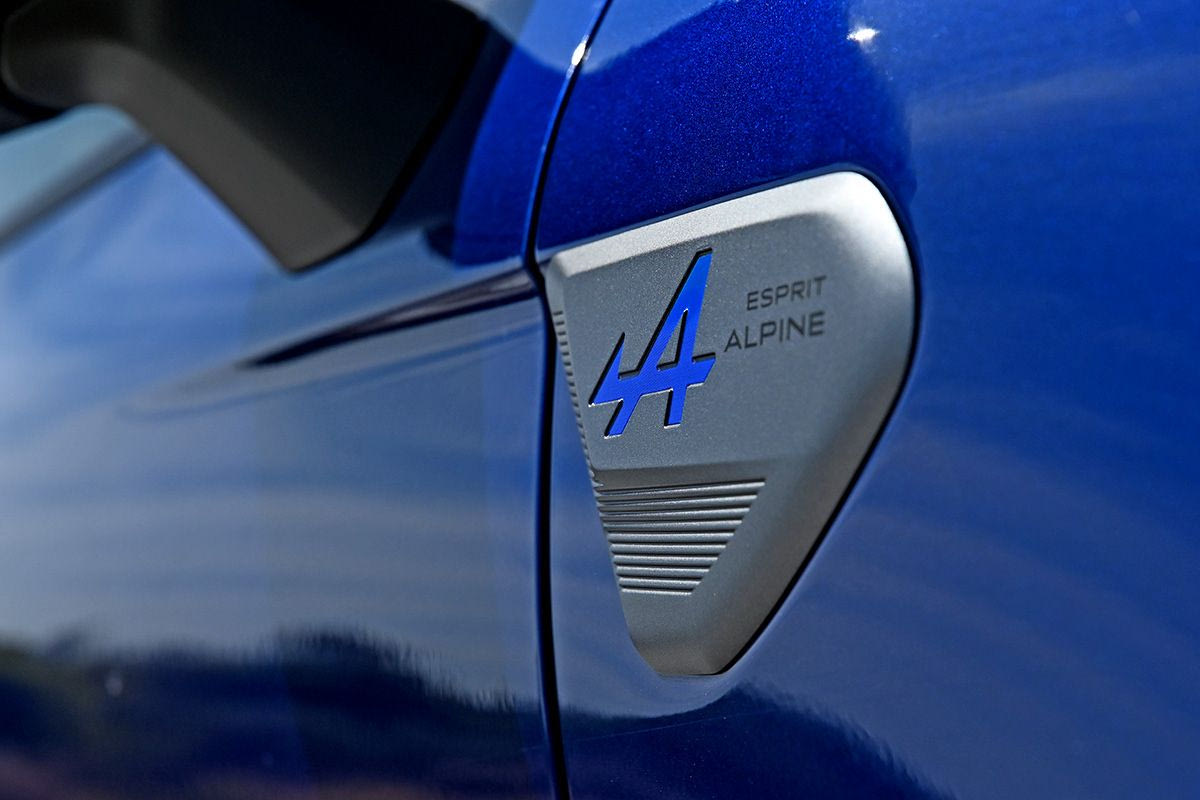 Η έκδοση Esprit Alpine, φυσικά στο “γαλλικό αγωνιστικό μπλε” του σπορ βραχίονα της Renault στη Διέππη, συμπληρώνει το εικαστικό και αεροδυναμικό σύνολο με την πτέρυγα και τον διαχύτη στην απόληξη της οροφής και του δαπέδου, καθώς και με τις εξειδικευμένες πολυακτινικές δίχρωμες ζάντες. Επίσης, κάνει γνωστά τα γονίδιά του με το έμβλημα της Alpine στα φτερά των εμπρός θόλων.