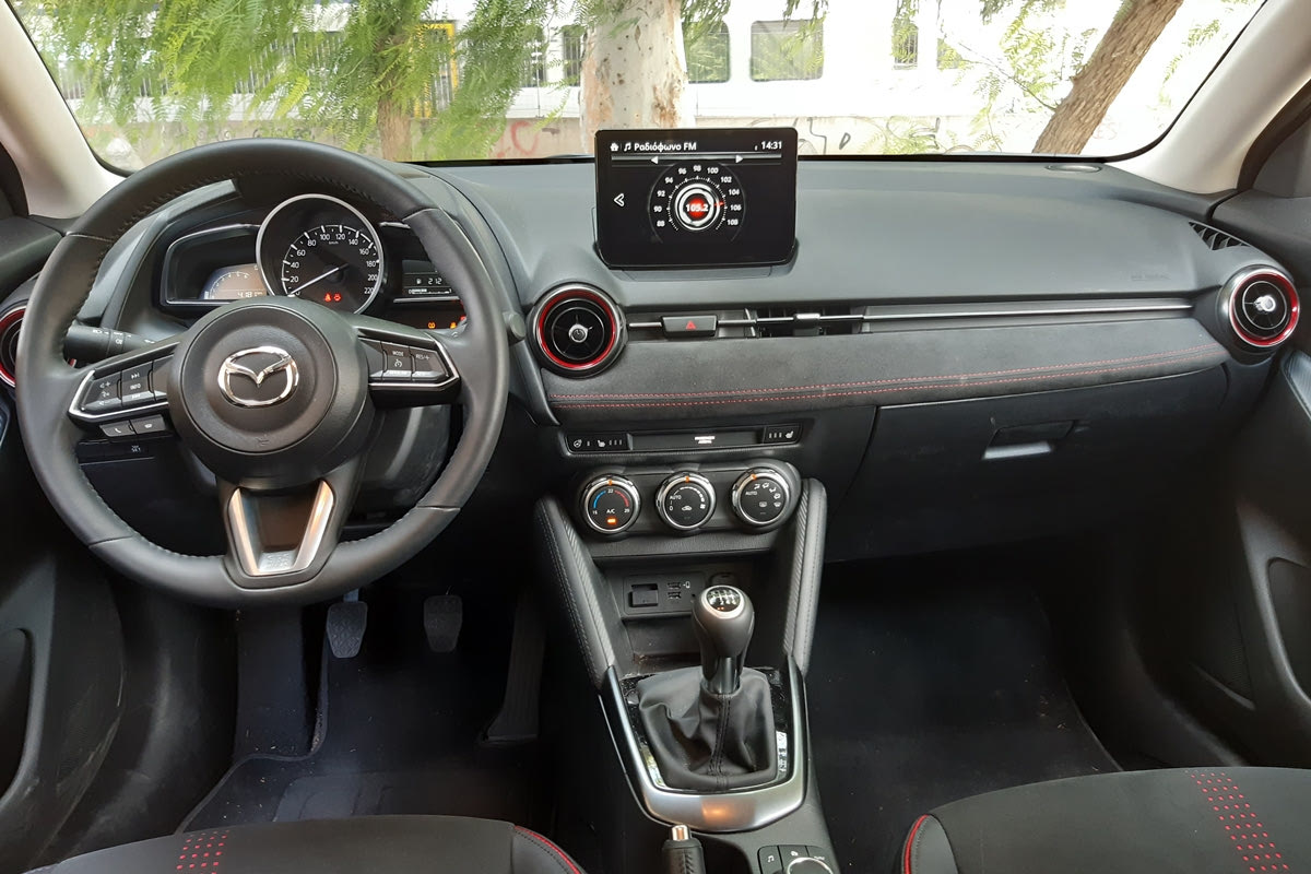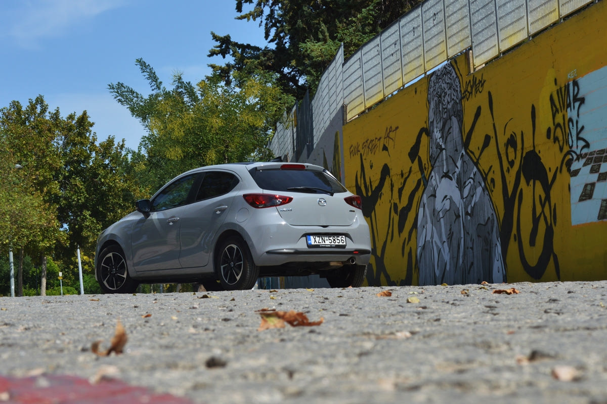 Αυτό και μόνο θα μπορούσε να πει κανείς πως είναι ένα αναχρονιστικό στοιχείο που καθορίζει και την αποδοχή του αυτοκινήτου από το κοινό. Όταν η αγορά έχει γεμίσει με τεχνολογικά πιο προηγμένα turbo σύνολα μικρότερου κυβισμού, με τρεις ή τέσσερις κυλίνδρους, που έχουν καλύτερη (και πιο αβίαστη) απόδοση ενώ εμφανίζουν και μεγαλύτερη οικονομία καυσίμου σε μέσο όρο χρήσης, τότε καταλαβαίνεται πόσο “συμπιεσμένο” είναι το κοινό στο οποίο απευθύνεται το Mazda 2.