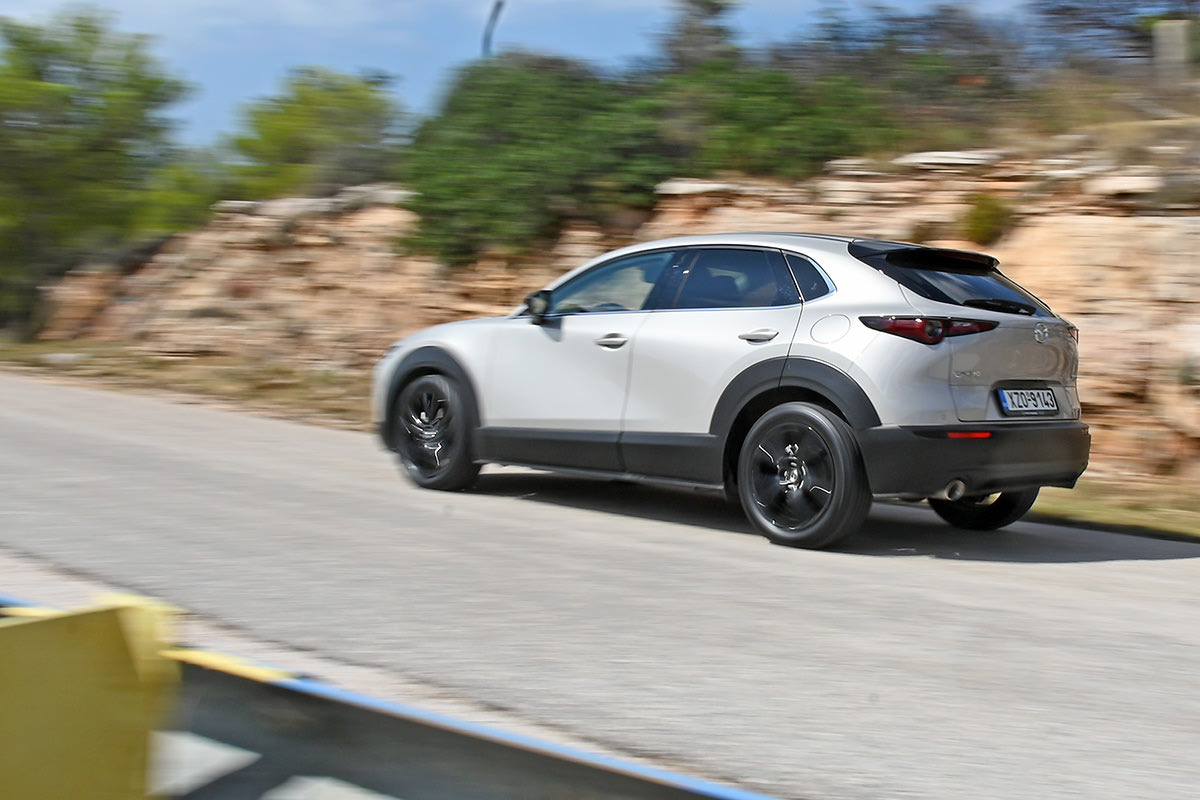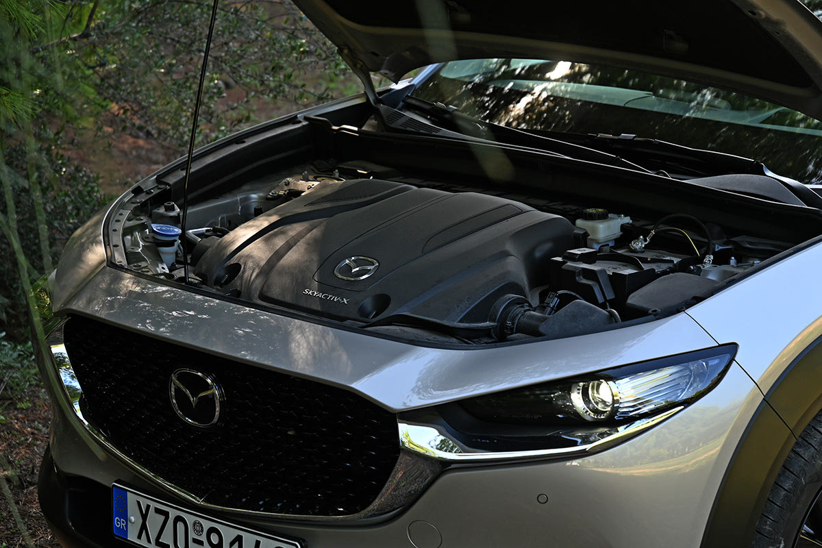 Από όλες τις ξεχωριστές πτυχές του CX-30, ίσως η πιο ιδιαίτερη είναι του κινητήρα: παρότι είναι δίλιτρος μπορεί κάλλιστα να κρατά -με λίγη προσοχή του οδηγού- την κατανάλωση στα 7,0 lt/100km, ενώ παράλληλα με τη δύναμη των 186 ίππων και το απόθεμα των 240 Nm του μπορεί να επιταχύνει τα 1.443 κιλά του αμαξώματος -συν τον οδηγό- στα 0-100 km/h σε 8,3 δευτερόλεπτα.