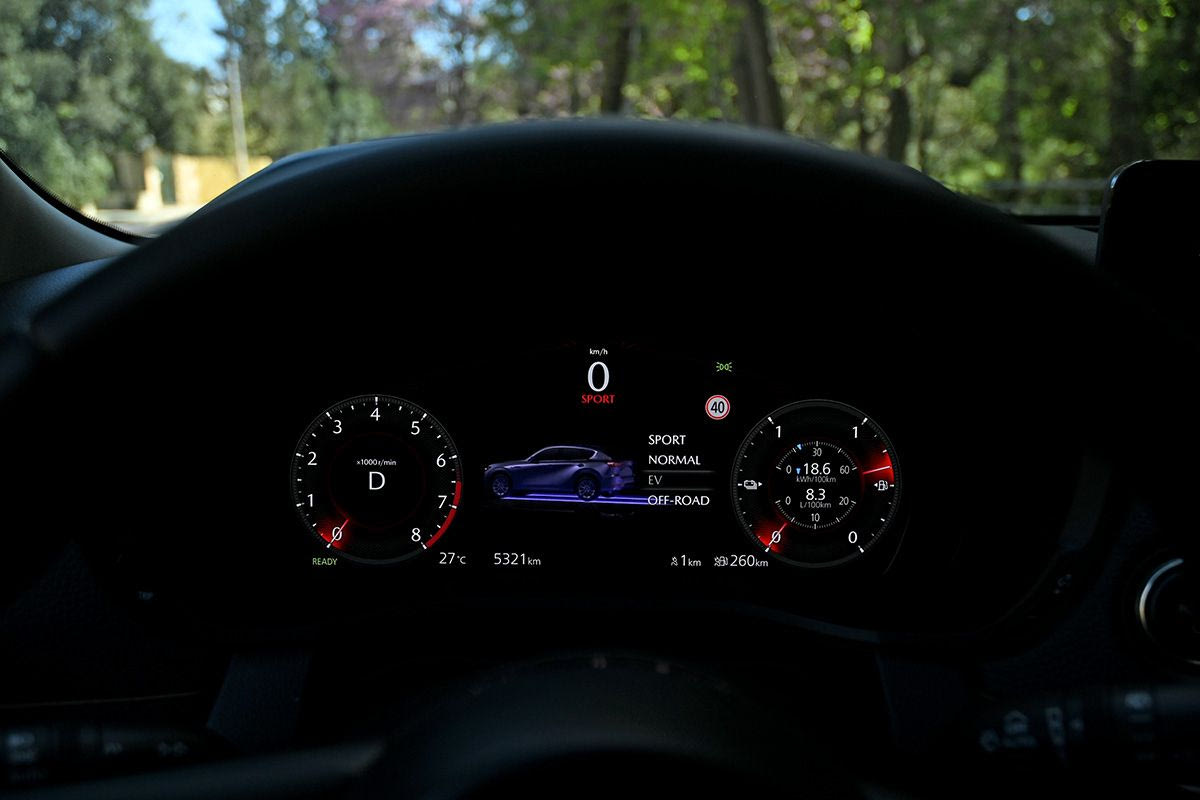 Ο ψηφιακός πίνακας οργάνων 12 ιντσών πίσω από τον οδηγό τηρεί ακόμα τις κλασσικές ενδείξεις του ταχύμετρου και στροφόμετρου, αλλά παραμετροποιείται – και επίσης μέσω αυτής ο οδηγός μπορεί να αλλάξει το οδηγικό προφίλ και άλλες ρυθμίσεις μέσω των κουμπιών του τιμονιού.