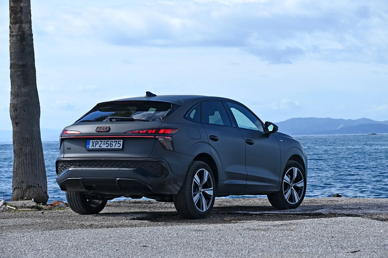 Στην ίδια φιλοσοφία, στο πίσω μέρος κυριαρχούν τα ψηφιακά OLED φώτα δύο επιπέδων, που τα συνδέει η λεπτή φωτεινή λωρίδα. Η ουρά του Q3 Sportback δεν παραπέμπει σε fastback, αλλά σίγουρα ηλεκτρίζει λίγο τους νευρώνες όσων μεταφέρουν τις νεανικές τους αυτοκινητικές αναμνήσεις στη μετέπειτα οικογενειακή ζωή τους.