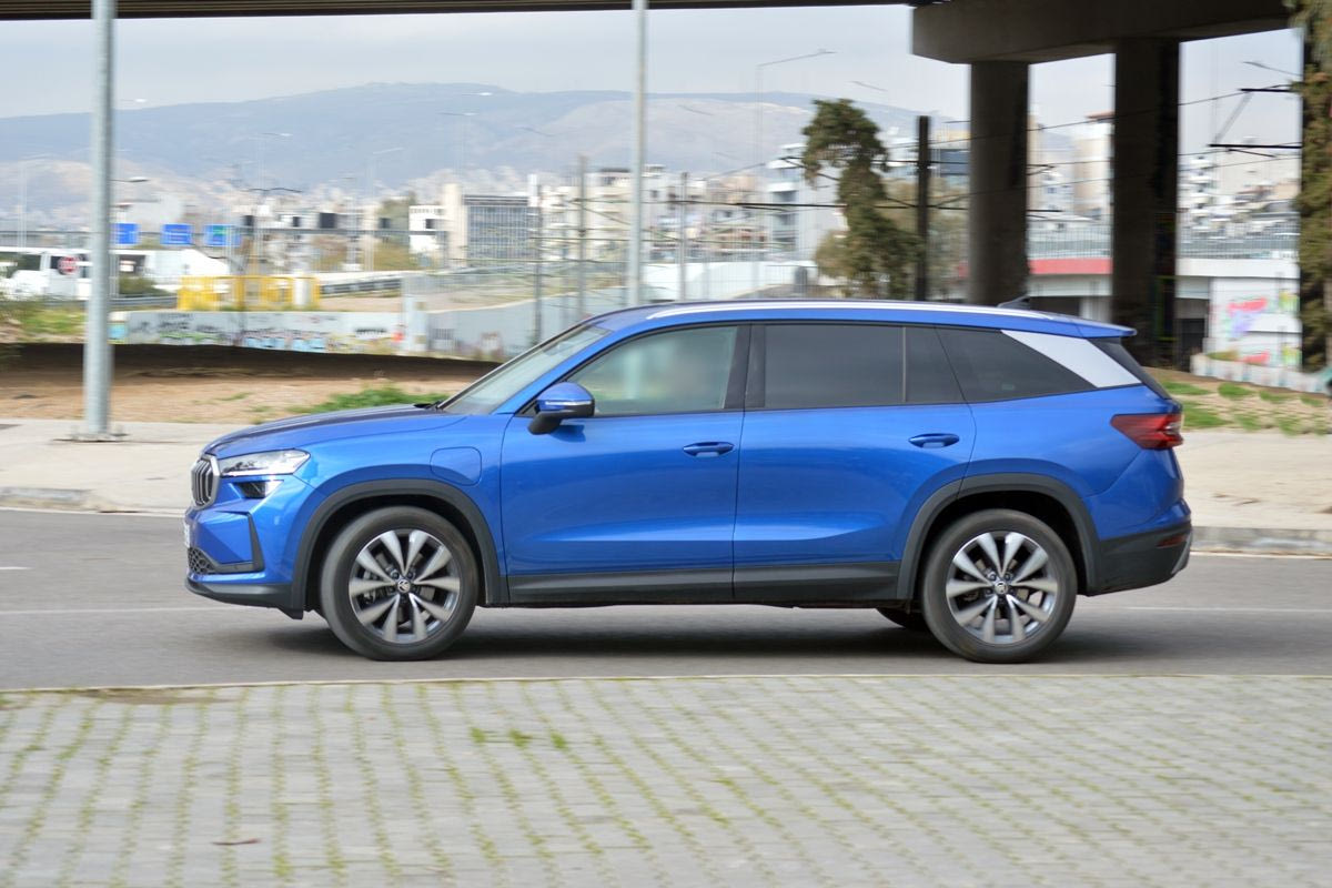 Το τιμόνι είναι άμεσο και ακριβές, παραπέμποντας σε πιο σπορ διάθεση από εκείνη του συνόλου. Η ανάρτηση ούτως ή άλλως, είναι σφιχτή, χωρίς ποτέ να γίνεται κουραστική. Το Kodiaq, όπως και σε κάθε άλλη έκδοση, έτσι και στη PHEV με τους 204 ίππους, είναι ευθύβολο, σταθερό και ευχάριστο όταν βρεθεί σε ανοιχτό δρόμο. Στο “κλειστό” επαρχιακό στροφιλίκι, μπορεί να δυσανασχετήσει λόγω διαστάσεων αλλά σε καμία περίπτωση δεν θα κάνει τον οδηγό του να… μετανιώσει που βρέθηκε εκεί.