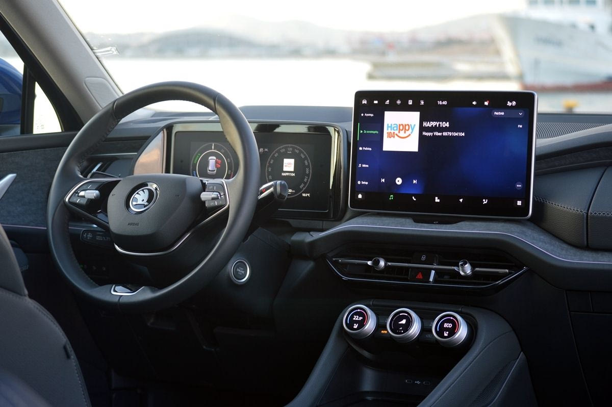 Η έλλειψη θορύβου αλλά και η ευθυγράμμιση της σχεδίασης του ταμπλό με τα αντίστοιχα αμιγώς ηλεκτρικά μοντέλα, δίνουν ένα πολύ ευχάριστο παρονομαστή σε όλες τις μετακινήσεις εντός και εκτός των τειχών. Είναι σημαντικό το ότι η ησυχία της ηλεκτροκίνησης, ταιριάζει τόσο πολύ στο αναβαθμισμένο ποιοτικό προφίλ του μοντέλου. Χωρίς στην πραγματικότητα να αποσυνδέεται ο οδηγός σε καμία περίσταση, το Kodiaq που μας έχει εντυπωσιάσει και στην έτερη υβριδική του εκδοχή, φροντίζει να τον διατηρεί ξεκούραστο και άνετο.