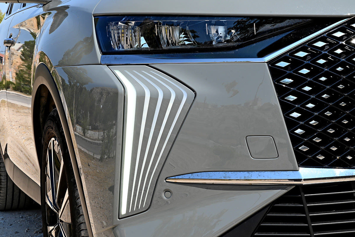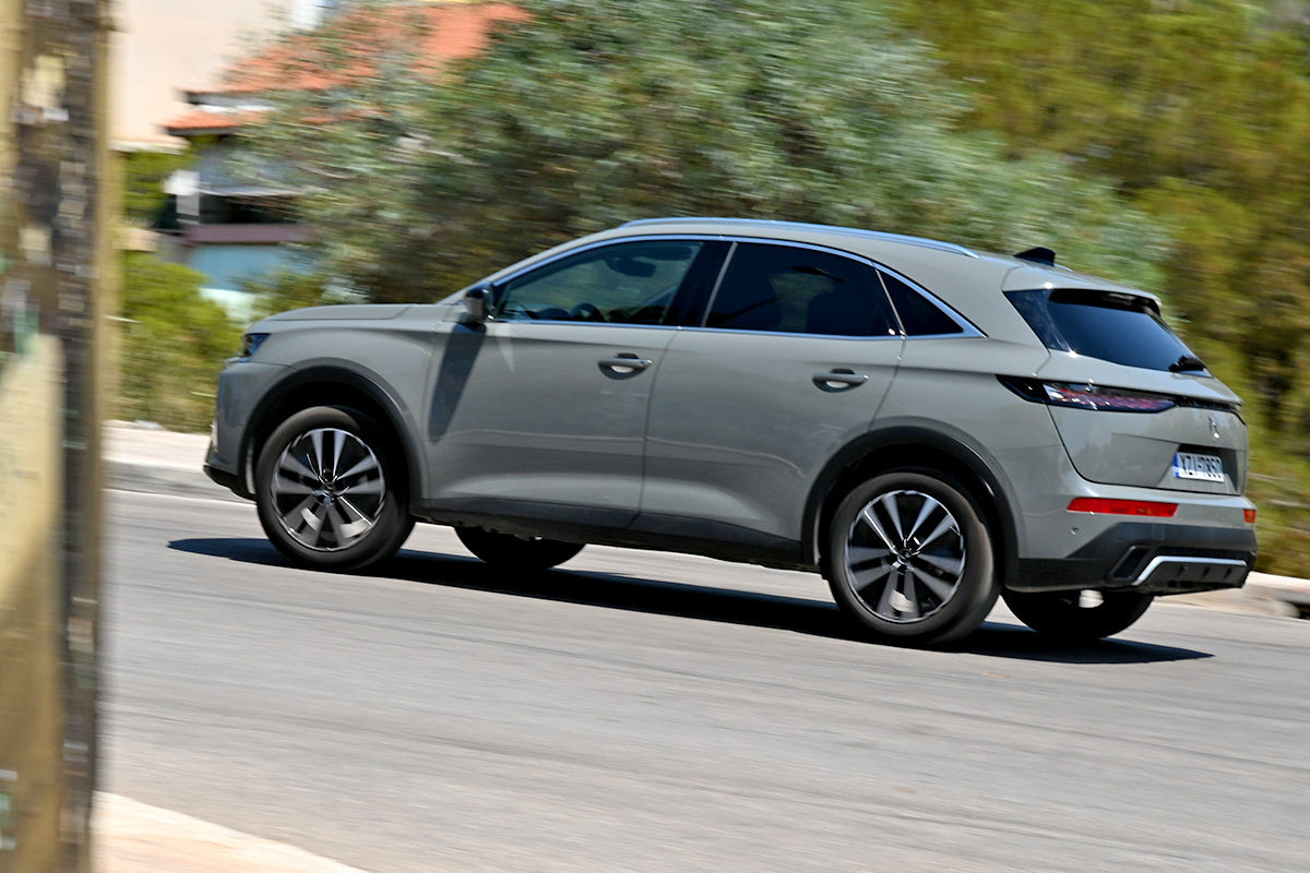 Το αυτοκίνητο ισορροπεί ιδανικά ανάμεσα στην κομψότητα και το δυναμισμό, στοιχεία αμφότερα μεταξύ των ζητούμενων στη συγκεκριμένη κατηγορία. Ειδικά στη δική μας περίπτωση, σε αυτό το γκρι χρώμα που αναδεικνύει ιδιαίτερα τις γραμμές του αμαξώματος, το DS 7 είναι ιδιαιτέρως γοητευτικό και ολοκληρωτικά ελκυστικό.