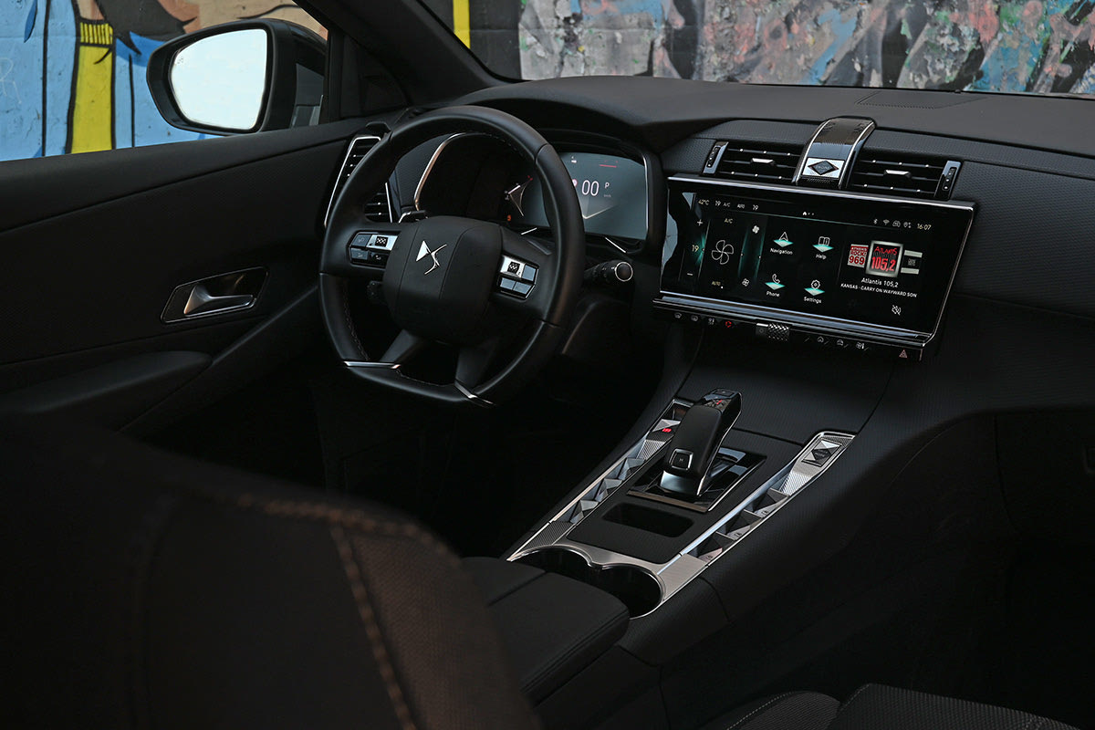 Στην καμπίνα, τα ποιοτικά υλικά δίνουν το απαραίτητο premium στίγμα, συμπληρώνοντας ιδανικά το κομψό σύνολο. Οι σχεδιαστές της DS Automobiles έχουν βάλει τα δυνατά τους εκεί και αυτό φαίνεται από την πρώτη κιόλας ματιά. Οι αισθητικές επιλογές, όπως είναι οι διακόπτες που πλαισιώνουν τον επιλογέα (για τα παράθυρα, το κεντρικό κλείδωμα και το κλείδωμα των πίσω παραθύρων), δίνουν στο σύνολο το απαραίτητο πνεύμα διαφοροποίησης.