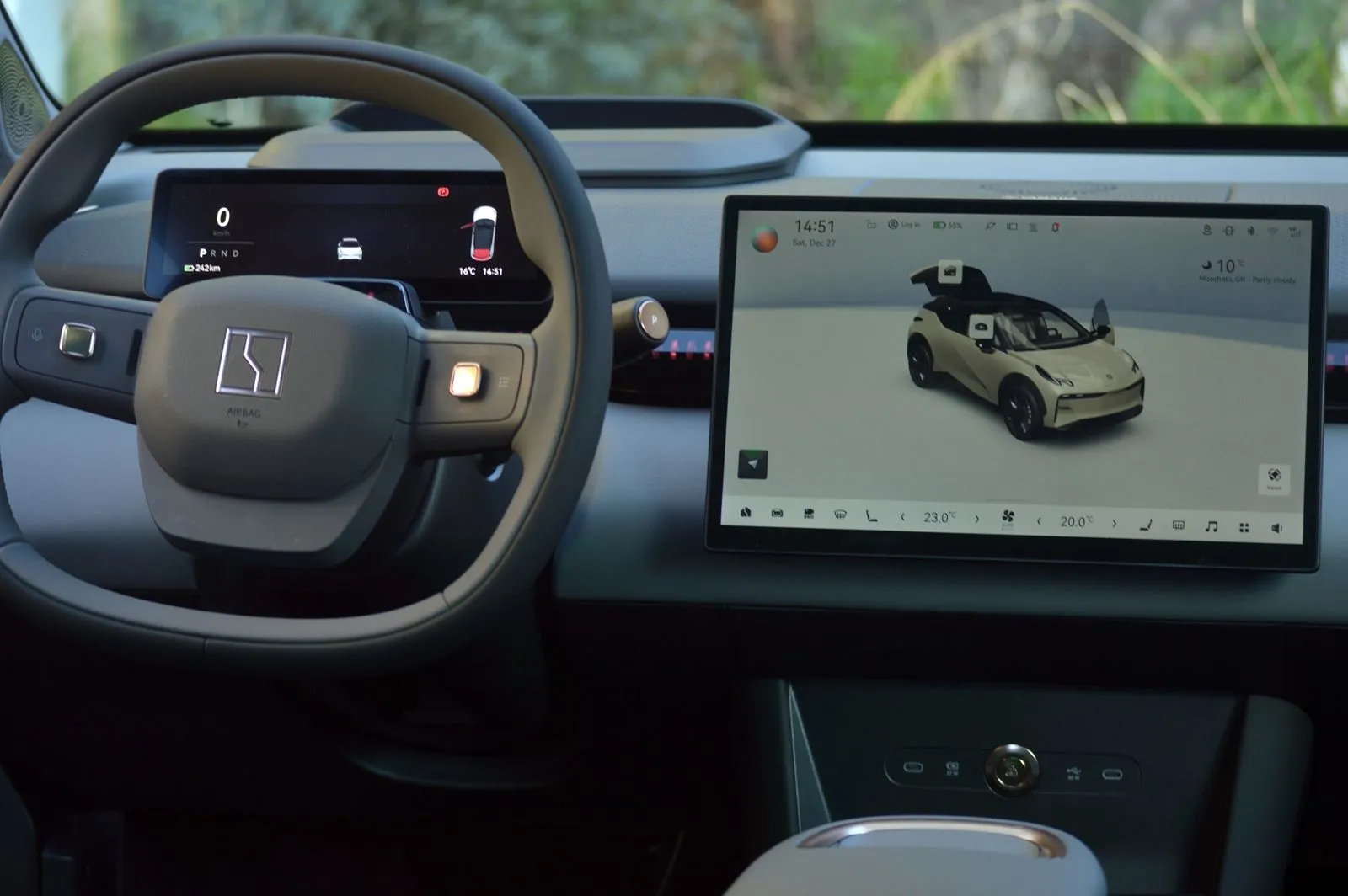 Όμως –και εδώ έχει σημασία να είμαστε ξεκάθαροι– το αυτοκίνητο της δοκιμής μας δεν διέθετε αυτά τα στοιχεία. Ούτε κινούμενη οθόνη, ούτε ηλεκτρικές πόρτες. Κάτι που αλλάζει ελαφρώς τον τρόπο που αντιλαμβάνεσαι το μοντέλο, ειδικά αν πας με τη λογική του “full tech παιχνιδιού”. Αυτό είναι ένα δεδομένο που θα θέλαμε να έχει προσεγγιστεί διαφορετικά από την Ελληνική αντιπροσωπεία, μια και θεωρώ πως αν το δημοσιογραφικό αυτοκίνητο είχε κάποια τέτοια συστατικά, θα έκαναν την πρότασή της πραγματικά ενδιαφέρουσα και διαφορετική από τον ανταγωνισμό και το “μήνυμα” της Zeekr θα έφτανε μάλλον πιο μακριά και με μεγαλύτερη ένταση.