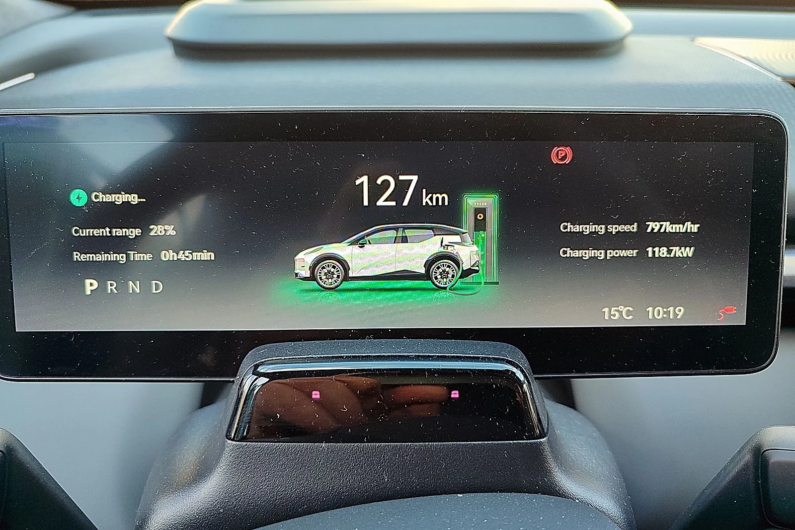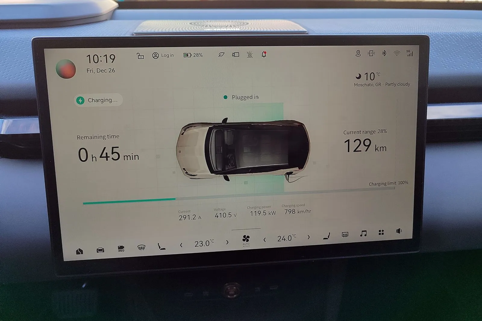 Εκεί όμως που πραγματικά ξεχωρίζει είναι στην ταχυφόρτιση (DC), με υποστήριξη έως 150 kW (σε πραγματικές συνθήκες, κατά τη διάρκεια της δοκιμής είδαμε μέχρι και 118 kW), επιτρέποντας φόρτιση από 10% σε 80% σε περίπου 30 λεπτά, όσο δηλαδή χρειάζεσαι για έναν καφέ και ξεμούδιασμα, προκειμένου να συνεχίσεις το ταξίδι σου. Όλα αυτά συνδυάζονται με ένα θερμικά σωστά διαχειριζόμενο σύστημα μπαταρίας, που εξασφαλίζει σταθερή απόδοση τόσο σε καθημερινή χρήση όσο και σε πιο απαιτητικές συνθήκες.