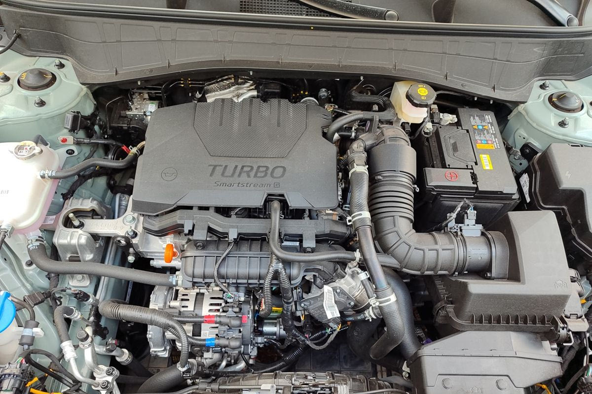 Ο επιλογέας του οποίου ειρήσθω εν παρόδω, αποπνέει μια στιβαρότητα άνευ προηγουμένου για μοντέλο της Hyundai, των σεσημασμένων με “Ν” εκδόσεων εξαιρουμένων. Η κλιμάκωση μοιάζει εξαιρετικά μελετημένη και γενικότερα, το ότι έχεις ένα χιλιάρη κινητήρα για την κίνηση του αυτοκινήτου που μόνο με τον οδηγό περνάει τον 1,5 τόνο σε βάρος, δεν θα σε προβληματίσει πουθενά.