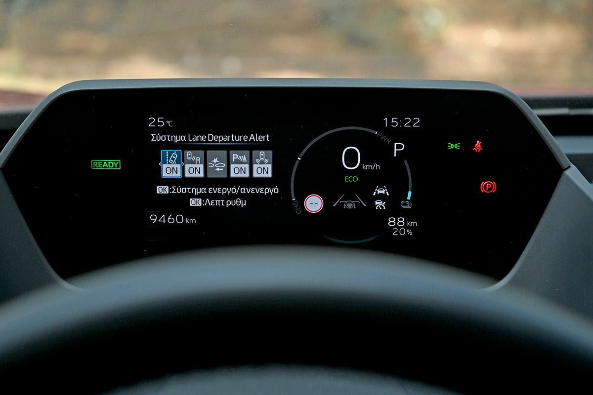 Επίσης, ο πολύ ιδιαίτερος σχεδιασμός του “αμφιθεατρικού” πλαστικού περιβλήματος του πίνακα οργάνων, που είναι στην κρίση του καθενός me την υποκειμενική του άποψη περί αισθητικής, αναγκάζει σε λίγο παράξενη ρύθμιση του τιμονιού για να μπορείς να βλέπεις την οθόνη πάνω από αυτό – που με τη σειρά που κάνει και λίγο ασυνήθιστη τη θέση οδήγησης.