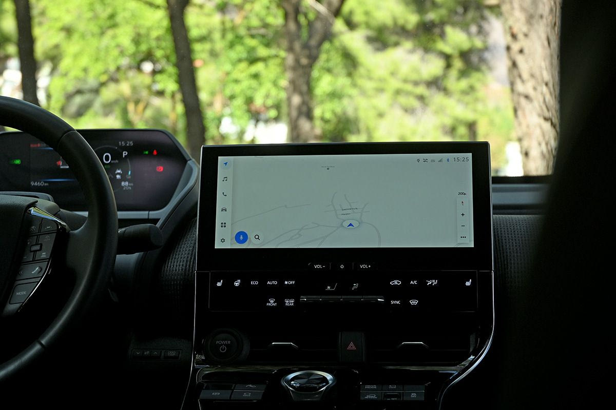 Αντίστοιχα, το ιαπωνικό ηλεκτρικό SUV, με τα διπλά ψαλίδια του πίσω και με το χαμηλό κέντρο βάρους, είναι πολύ πιο αθλητικό από όσο δείχνει στην άσφαλτο. Οι Ιάπωνες υποστηρίζουν ότι έχει λίγο βαρύτερο τιμόνι από το bZ4X και λίγο πιο σφιχτά αμορτισέρ, και παρότι η διαφορά στο δρόμο δεν είναι κραυγαλέα, αυτό είναι ενδεικτικό των προθέσεών τους.