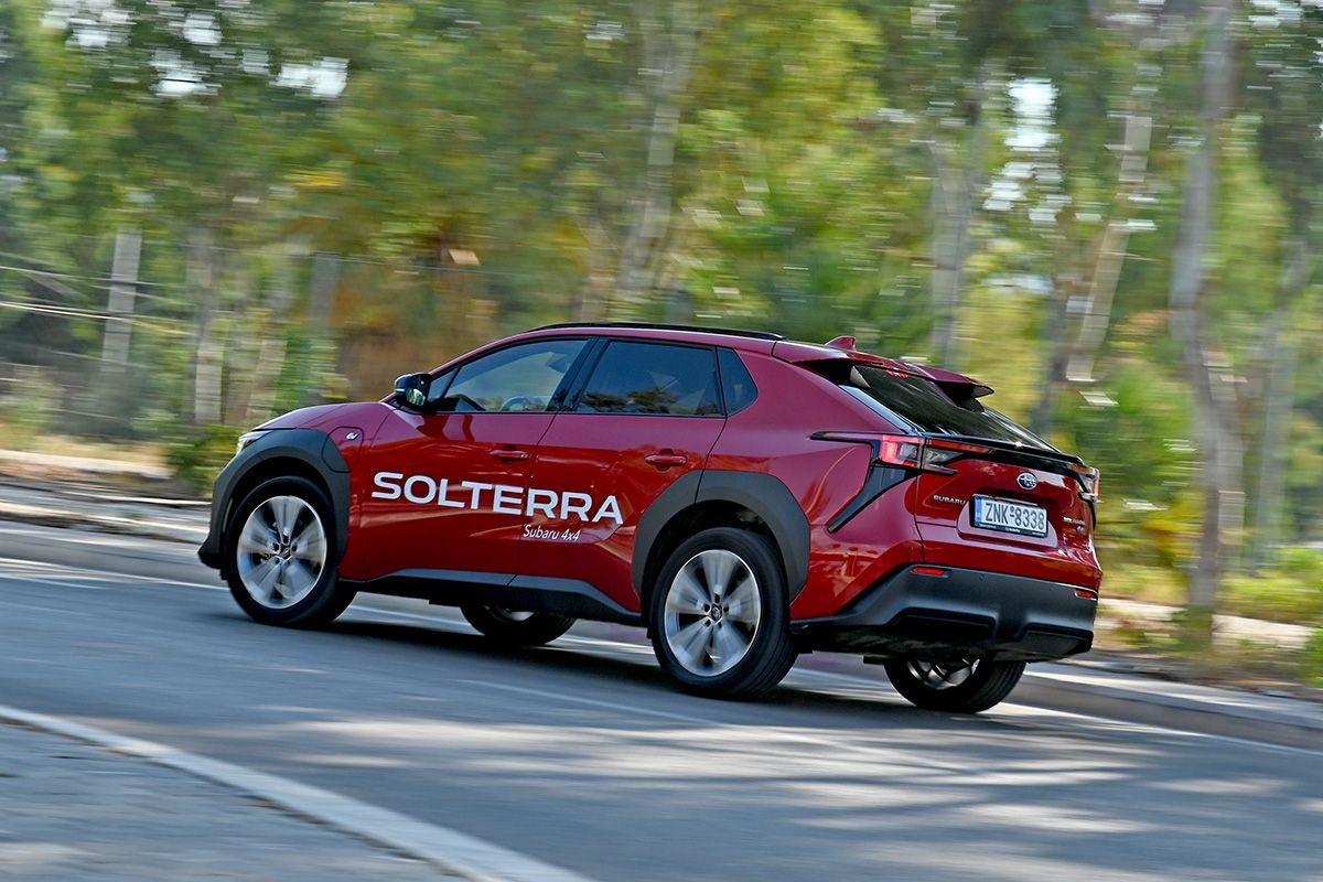 Το Solterra έχει δύο ηλεκτροκινητήρες, έναν στον εμπρός άξονα και έναν στον πίσω, που αποδίδει ο καθένας τους 109 ίππους και 168 Nm ροπής. Τα δύο ηλεκτρικά μοτέρ αντλούν την ενέργειά τους από τη μπαταρία των 71,4 kWh, η οποία κατά τη Subaru προσφέρει αυτονομία 465 χιλιομέτρων, αλλά στην πράξη και σε μεικτές συνθήκες κίνησης -και με χρήση του κλιματισμού- αποδείχθηκε στη δοκιμή μας κατά περίπου 100 χιλιόμετρα χαμηλότερη.