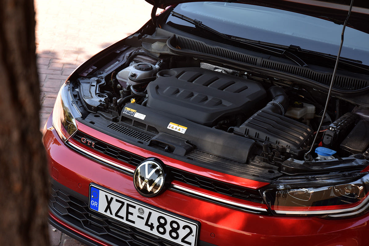 Ο εξευγενισμός του μοτέρ δεν έχει να κάνει μόνο με την επιλογή της Volkswagen να μην του προσδώσει ωμό ή τραχύ ή μπάσο ήχο, όπως σε άλλα μικρά hot-hatches, αλλά και με την τεχνολογία του – το διπλό σύστημα ψεκασμού, τον ηλεκτρονικό έλεγχο των βαλβίδων, την κεντρική μονάδα ελέγχου: όλα αυτά κρατούν τις εκρήξεις του μοτέρ και τις διοχετεύουν πιο προοδευτικά, σε ομαλότερες καμπύλες ισχύος και ροπής.