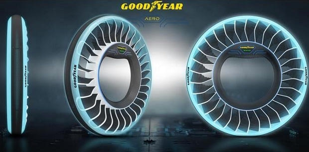 Η Goodyear παρουσίασε το concept AERO, ένα ελαστικό δύο – σε – ένα σχεδιασμένο για τα αυτόνομα αυτοκίνητα του μέλλοντος που πετάνε. Αυτή η ιδέα θα μπορούσε να λειτουργήσει τόσο σαν ένα ελαστικό για την οδήγηση στο δρόμο όσο και σαν «προπέλα» για να μπορεί το αυτοκίνητο να πετά.