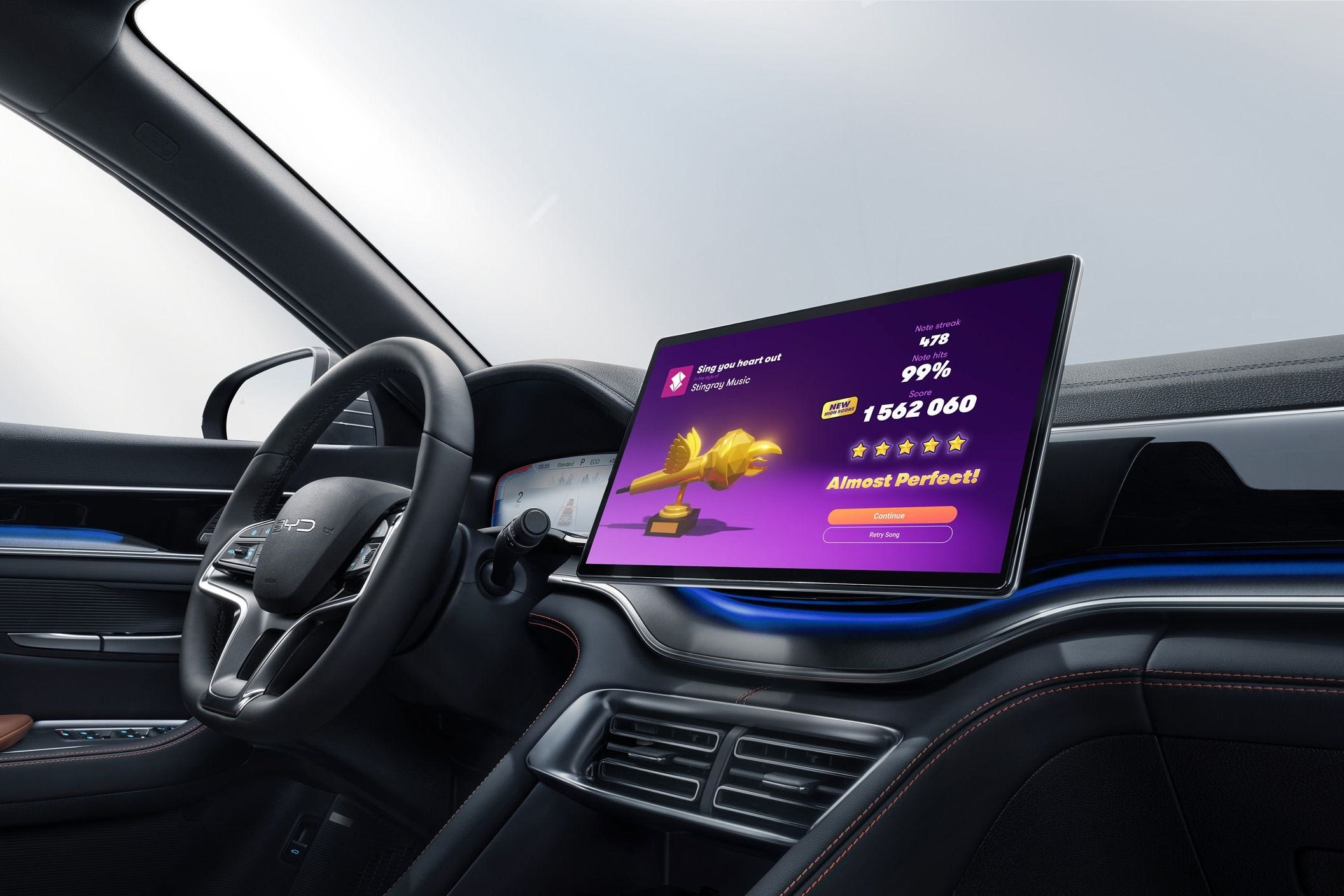 Επιπλέον, οι μελλοντικές εκδόσεις θα περιλαμβάνουν ζωντανή διόρθωση τονικότητας, μια μοναδική δυνατότητα που προσαρμόζει αυτόματα τη φωνή του τραγουδιστή σε πραγματικό χρόνο, διασφαλίζοντας ότι θα παραμένει σε αρμονία με τη βασική μελωδία του τραγουδιού. Το σύστημα ενημέρωσης και ψυχαγωγίας της BYD θα υποστηρίζει πολλές γλώσσες και θα προσφέρει μια διαισθητική διεπαφή χρήστη.