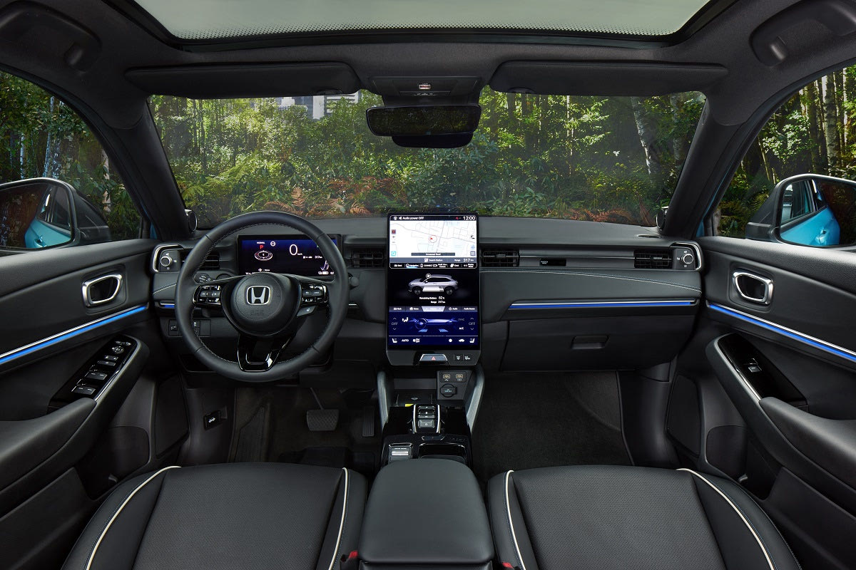 Η εμφάνιση παραπέμπει μεν στο HR-V αλλά ακολουθεί το δικό της δρόμο και με χαρακτηριστικά όπως ο κοντός εμπρός πρόβολος, οι μεγάλοι τροχοί, τα φαρδιά μετατρόχια και τα λευκά λογότυπα “H”, λανσάρει την εντελώς νέα σχεδιαστική ταυτότητα που θα υιοθετήσουν τα ηλεκτρικά μοντέλα της Honda.