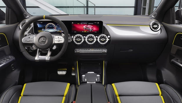 Αλλά και σχεδιαστικά, υπάρχουν χαρακτηριστικά που αναδεικνύουν ένα καλογυμνασμένο… αμάξωμα, με πολύ σπορ στοιχεία και στην καμπίνα, ενώ πολύ χρήσιμο αποδεικνύεται το σύστημα ενημέρωσης ψυχαγωγίας MBUX infotainment…
