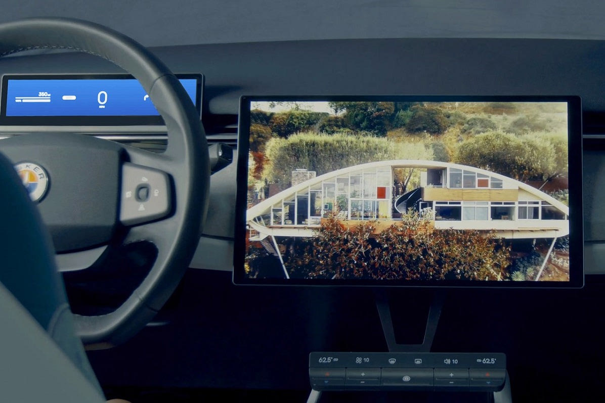 Στο εσωτερικό εντύπωση κάνει η μεγάλη οθόνη 17,1 ιντσών που μάλιστα έχει τη δυνατότητα να περιστρέφεται σε δύο θέσεις: κατακόρυφη ή οριζόντια! Καινοτόμο είναι και το σύστημα “California Mode” που ανοίγει αυτόματα 8 γυάλινες επιφάνειες με ένα κουμπί: όλα τα παράθυρα (συν του πορτμπαγκάζ) και την ηλιοροφή, δημιουργώντας την αίσθηση κάμπριο αυτοκινήτου.
