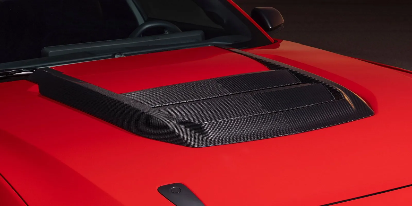 Την ίδια στιγμή, το αμάξωμα της Mustang Dark Horse SC επωφελήθηκε από πρόσθετες αναβαθμίσεις που προέκυψαν κατά τη διάρκεια της εξέλιξής της στην πίστα, όπως για παράδειγμα το νέο καπό και οι αεραγωγοί από ανθρακονήματα, τα οποία συνδυάστηκαν με τη νέα σχεδίαση στο εμπρός μέρος, καθώς και με αλλαγές για τη βελτιστοποίηση της ροής του αέρα κάτω από το αμάξωμα.