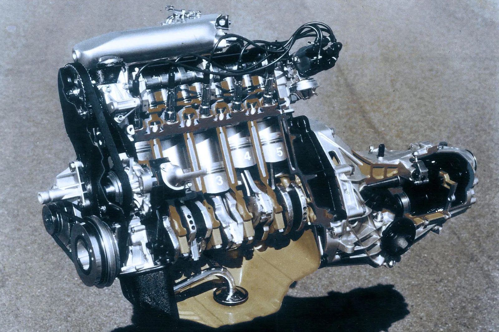 Η ιδέα ενός εξακύλινδρου εν σειρά απορρίφθηκε γρήγορα λόγω περιορισμένου χώρου και δυσμενούς κατανομής βάρους. Έτσι, η επιλογή στράφηκε προς τον εν σειρά πεντακύλινδρο κινητήρα, ο οποίος βασίστηκε στη φιλοσοφία του τότε υπό ανάπτυξη EA 827. Η συγκεκριμένη αρχιτεκτονική, αρχικά τετρακύλινδρη, είχε ήδη βρει εφαρμογή σε πολλά μοντέλα του Ομίλου Volkswagen τη δεκαετία του ’70, μεταξύ αυτών και στα Audi 80 και Audi 100, αποτελώντας το υπόβαθρο για έναν από τους πιο εμβληματικούς κινητήρες στην ιστορία της εταιρείας.