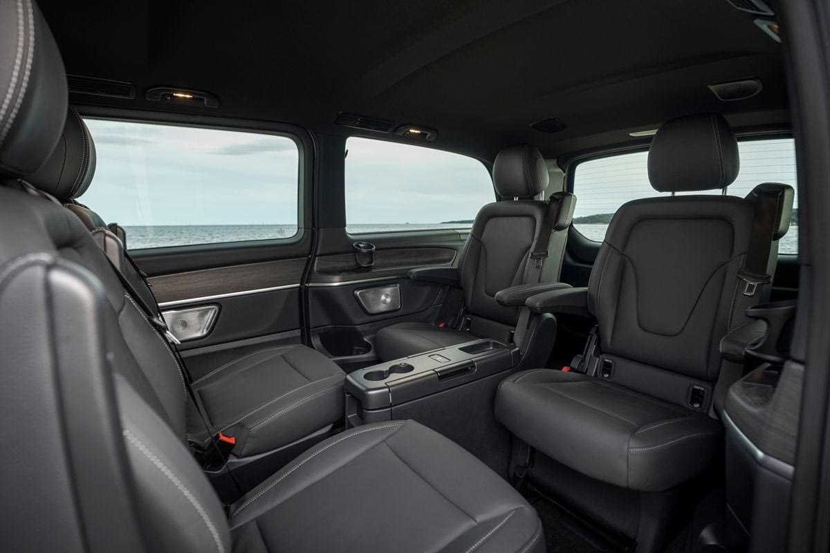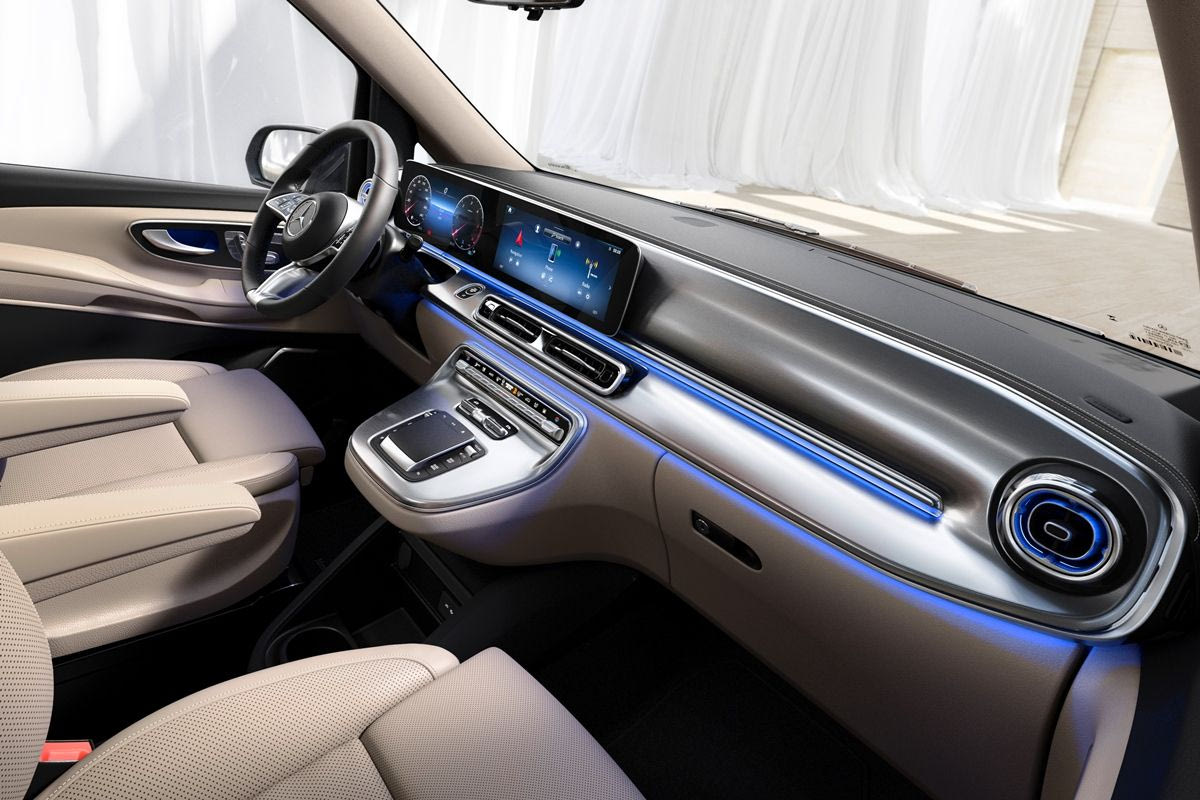 Με 64 διαφορετικές επιλογές χρωματισμών, ο ατμοσφαιρικός φωτισμός προσφέρει ακόμα πιο εξατομικευμένη και ευχάριστη ατμόσφαιρα. Για πιο άνετη πρόσβαση στο πίσω μέρος, η V-Class και η EQV διαθέτουν επίσης συρόμενες πόρτες στην αριστερή και δεξιά πλευρά του οχήματος στο βασικό εξοπλισμό. Επιπλέον, συνδυαστικά με το αυτόματο κιβώτιο ταχυτήτων διαθέτουν και ηλεκτρικό χειρόφρενο.