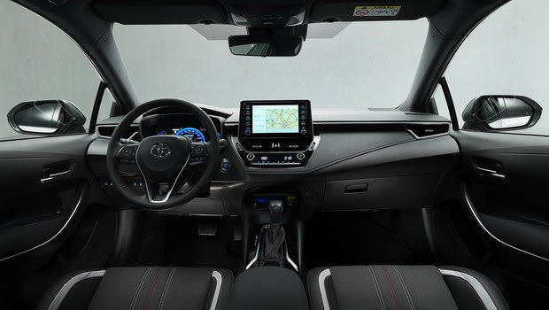 Στην ευρύχωρη καμπίνα (2,7 μ. μεταξόνιο), εξίσου κυριαρχεί το μαύρο στις ταπετσαρίες, στο τιμόνι με διάτρητο δέρμα, στον επίσης δερμάτινο λεβιέ ταχυτήτων. Τα καθίσματα είναι εντυπωσιακά με ενσωματωμένα προσκέφαλα και γενναιόδωρα πλευρικά μαξιλαράκια, επενδεδυμένα με μαύρο ύφασμα και συνθετικό δέρμα υψηλής ποιότητας, με μοτίβο κάθετης βελονιάς σε λευκό και κόκκινο χρώμα, που ταιριάζει με τα χρώματα της TOYOTA GAZOO Racing. Το ίδιο θέμα χρώματος εφαρμόζεται και στα πίσω καθίσματα.
