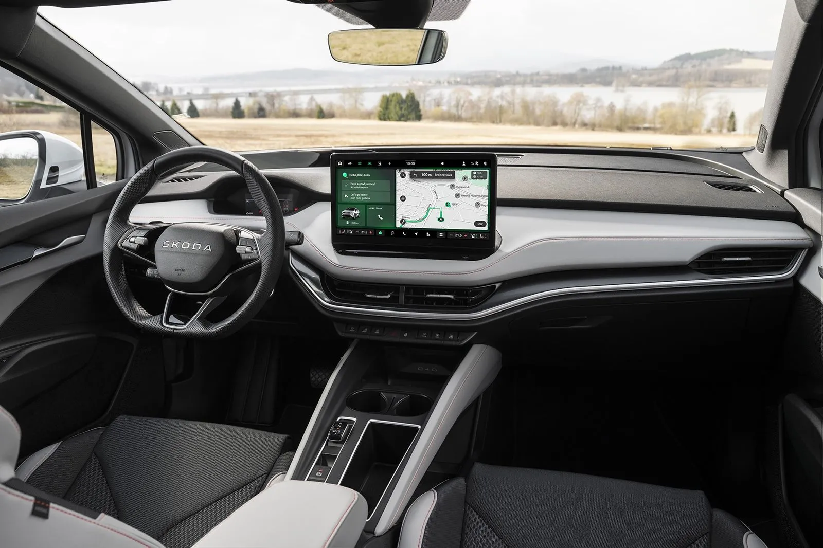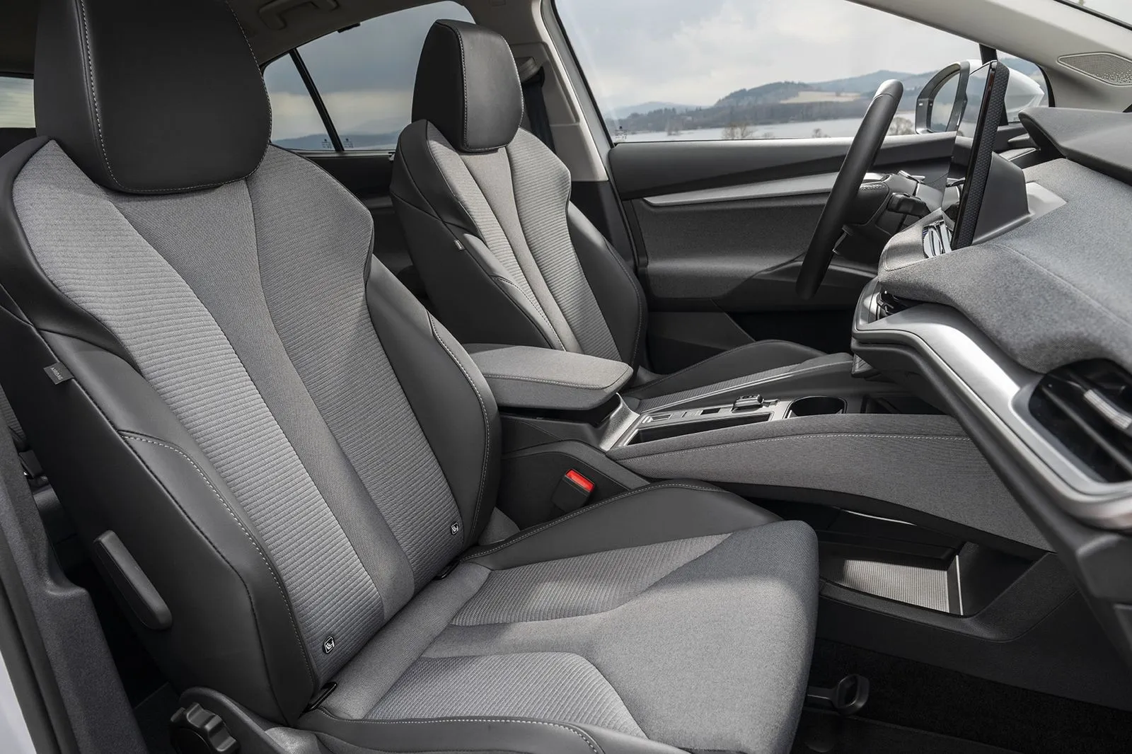 Με χώρο αποσκευών 585 λίτρων και κορυφαία άνεση για όλους τους επιβάτες, το Enyaq είναι φτιαγμένο για καθημερινές και οικογενειακές ανάγκες. Ακόμη και οι πίσω επιβάτες απολαμβάνουν γενναιόδωρο χώρο απολαμβάνοντας με άνεση το ταξίδι. Το εσωτερικό συνδυάζει premium αισθητική με βιώσιμα υλικά, δείχνοντας ότι η πρακτικότητα μπορεί να συνυπάρχει με τον σύγχρονο σχεδιασμό.