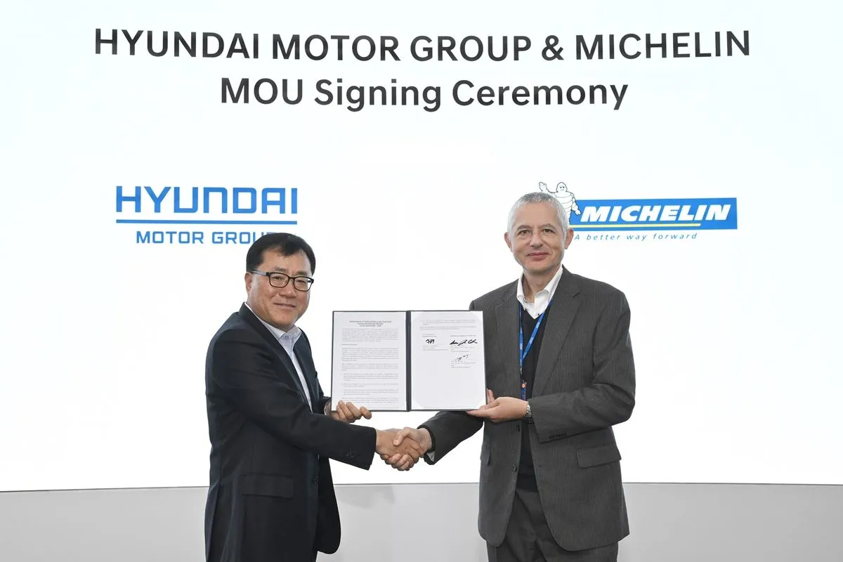 Το Hyundai Motor Group υπέγραψε τρίτο μνημόνιο συνεργασίας (MOU) με τη Michelin με στόχο την επιτάχυνση των καινοτομιών στην τεχνολογία των ελαστικών, οι οποίες θα καθορίσουν την αγορά της μελλοντικής κινητικότητας. Η συμφωνία αυτή συνεχίζει τη συνεργασία μεταξύ των εταιρειών που θεμελιώθηκε μέσω των MOU που υπογράφηκαν το 2017 και το 2022.