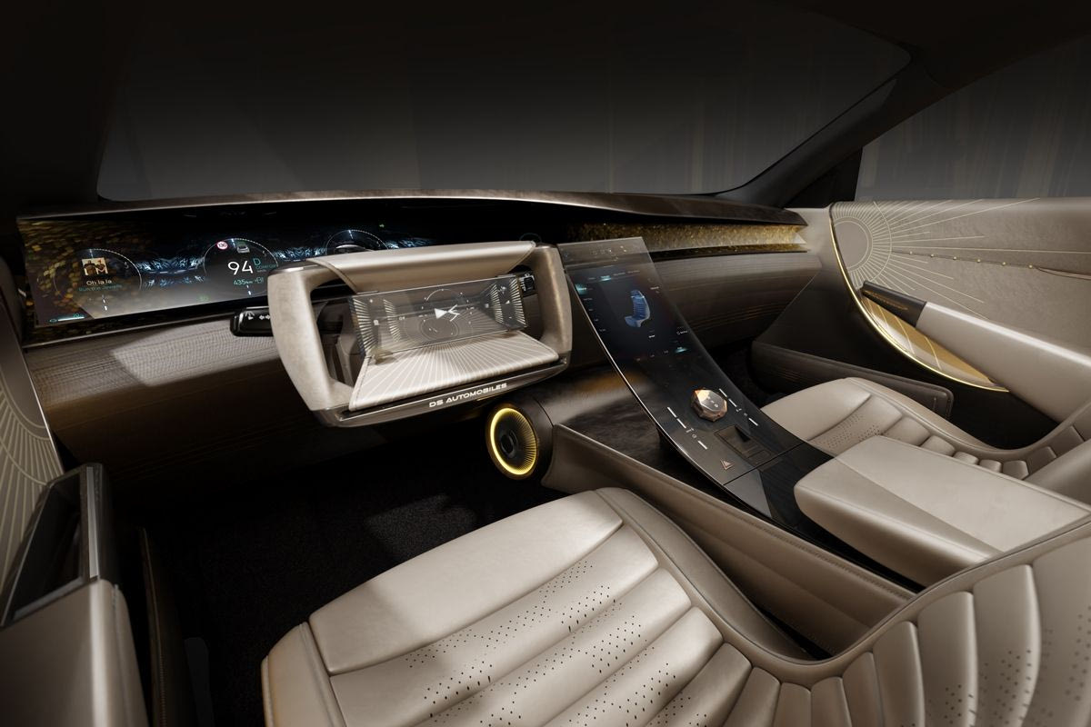 Η κυρτή οθόνη που παίζει το ρόλο της κεντρικής κονσόλας αλλά και το παραλληλόγραμμο μικρό τιμόνι, είναι δύο από τα στοιχεία που τραβούν την προσοχή, μετά τα “ανοιχτά” καθίσματα που δείχνουν να δίνουν προτεραιότητα στην άνεση. Φυσικά, θα ήταν ουτοπικό να περιμένουμε από την DS Automobiles να προχωρήσει σε κάποια έγκριση για παραγωγή του μοντέλου όπως το βλέπουμε.